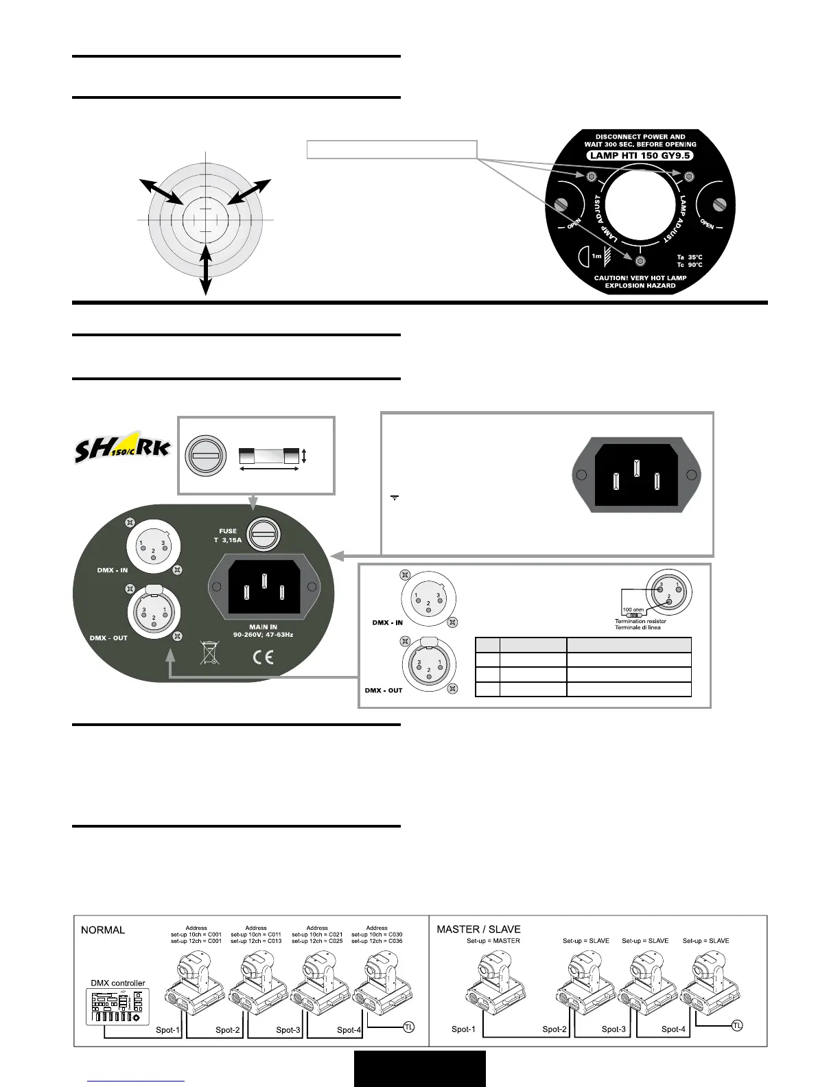 ohm. E’ raccomandato per tutti i sistemi DMX 512 inserire il teminale di linea nel connettore uscita DMX dell’ultimo apparecchio