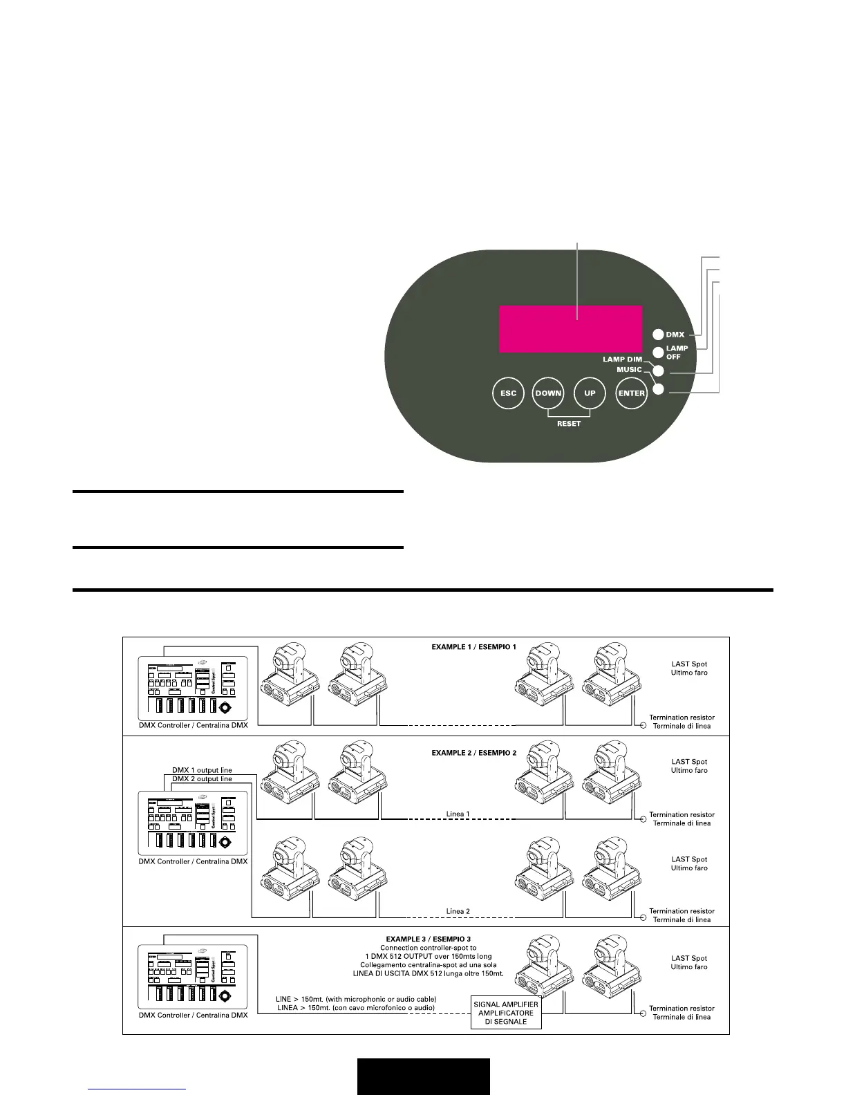 EXAMPLE OF CONNECTION DMX CONTROLLER-SPOT / ESEMPIO DI COLLEGAMENTO CENTRALINA-FARI