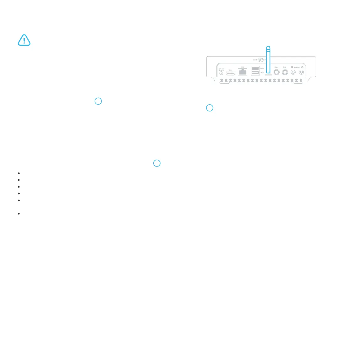 For efficient and correct microphones operation, the antenna should be installed vertically, and the karaoke system should be placed at least 0.5 meters away