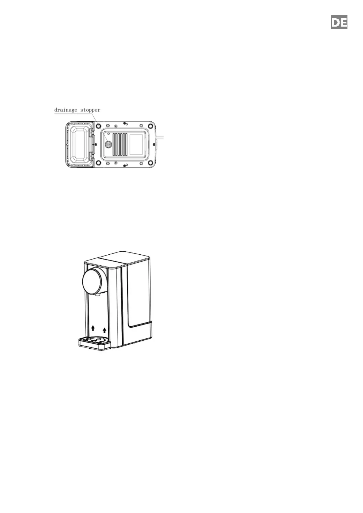 Hinweis! Sollte nach dem Füllen des Wassertanks Wasser austreten, überprüfen Sie, ob der Ablassstopfen richtig