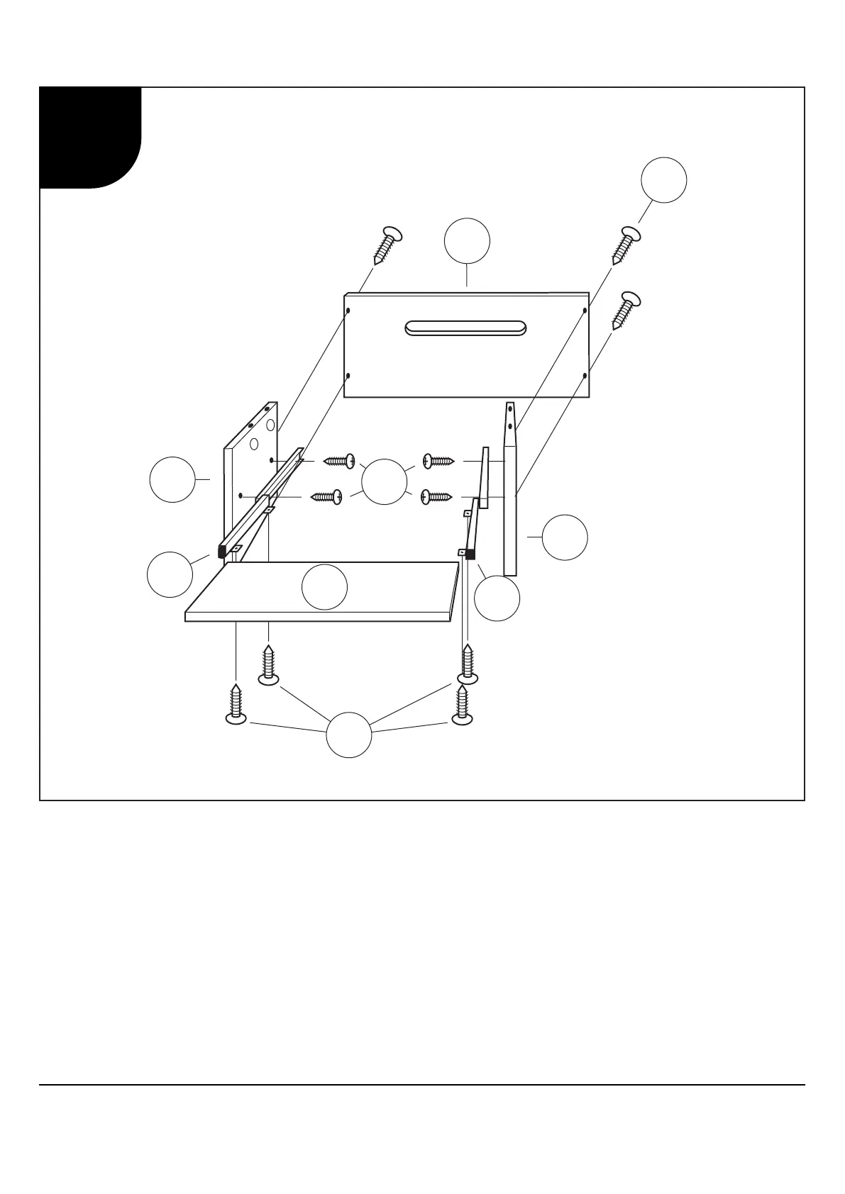 3. Slide Middle Shelf (11) onto tabs on Sliders and attach using Phillips Screws (26).