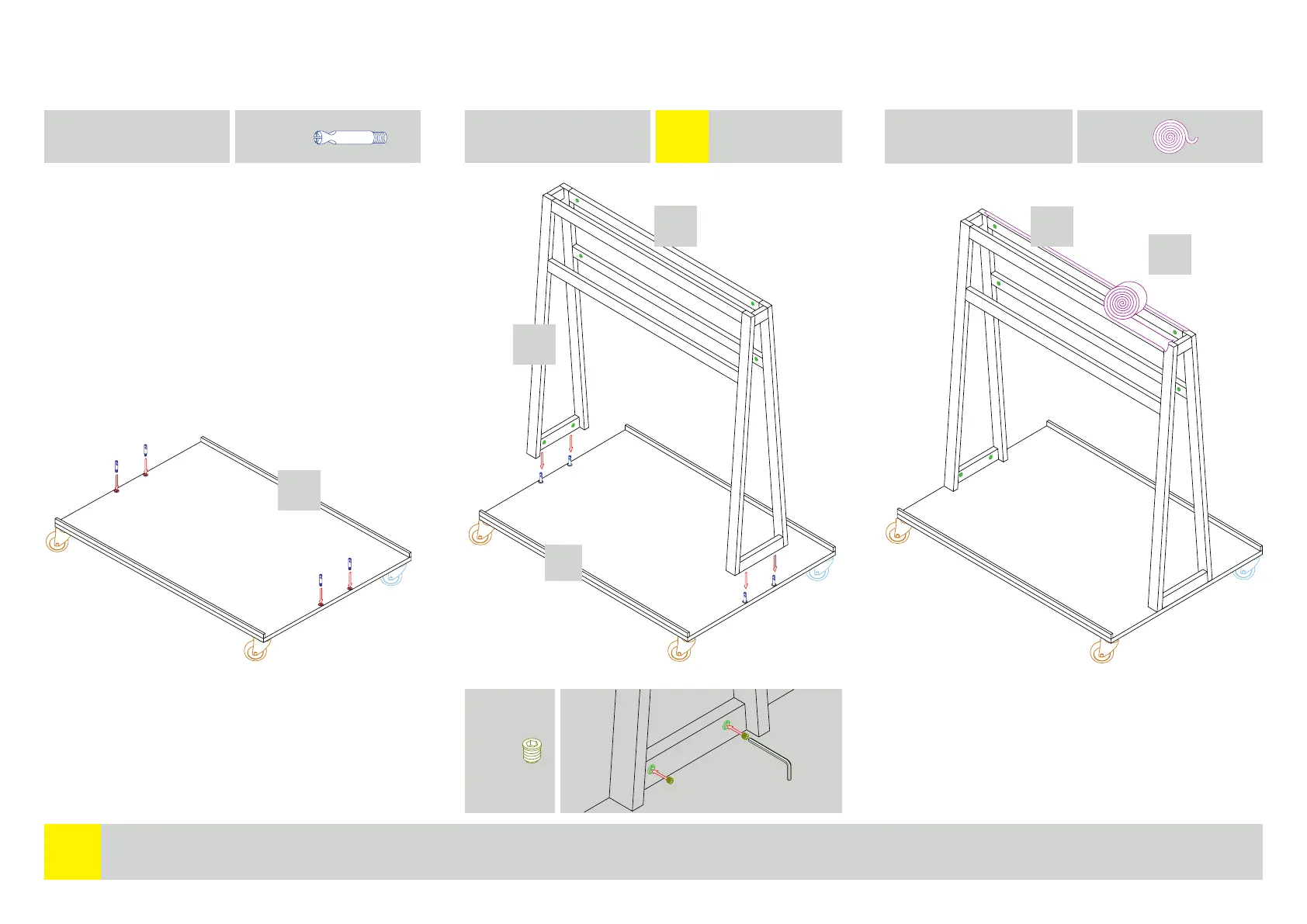 Studio Tools Trolley - Attach support handle to base panel; Attach felt sticky tape to cross struts