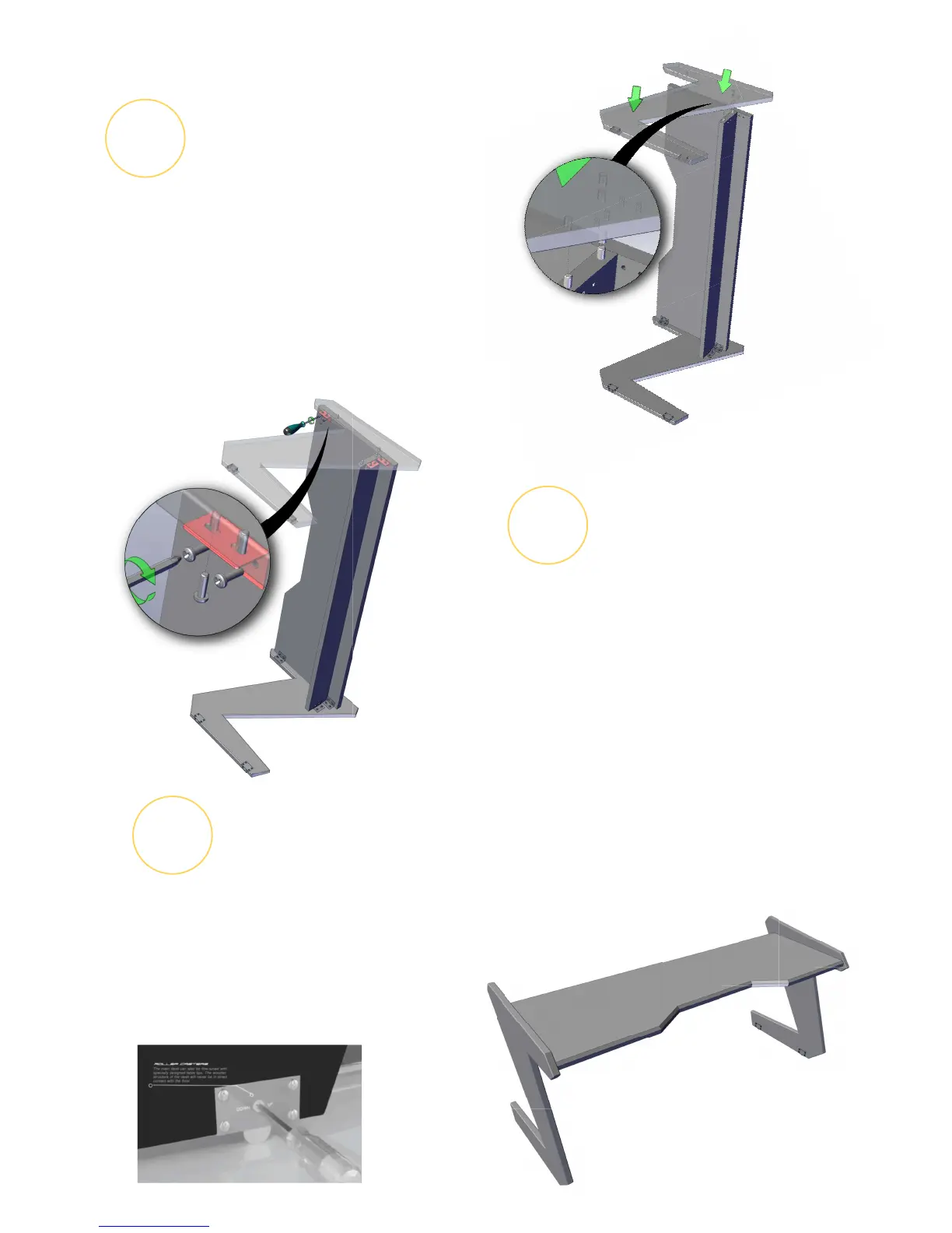 to match leg holes with the dowels. Ensure that every