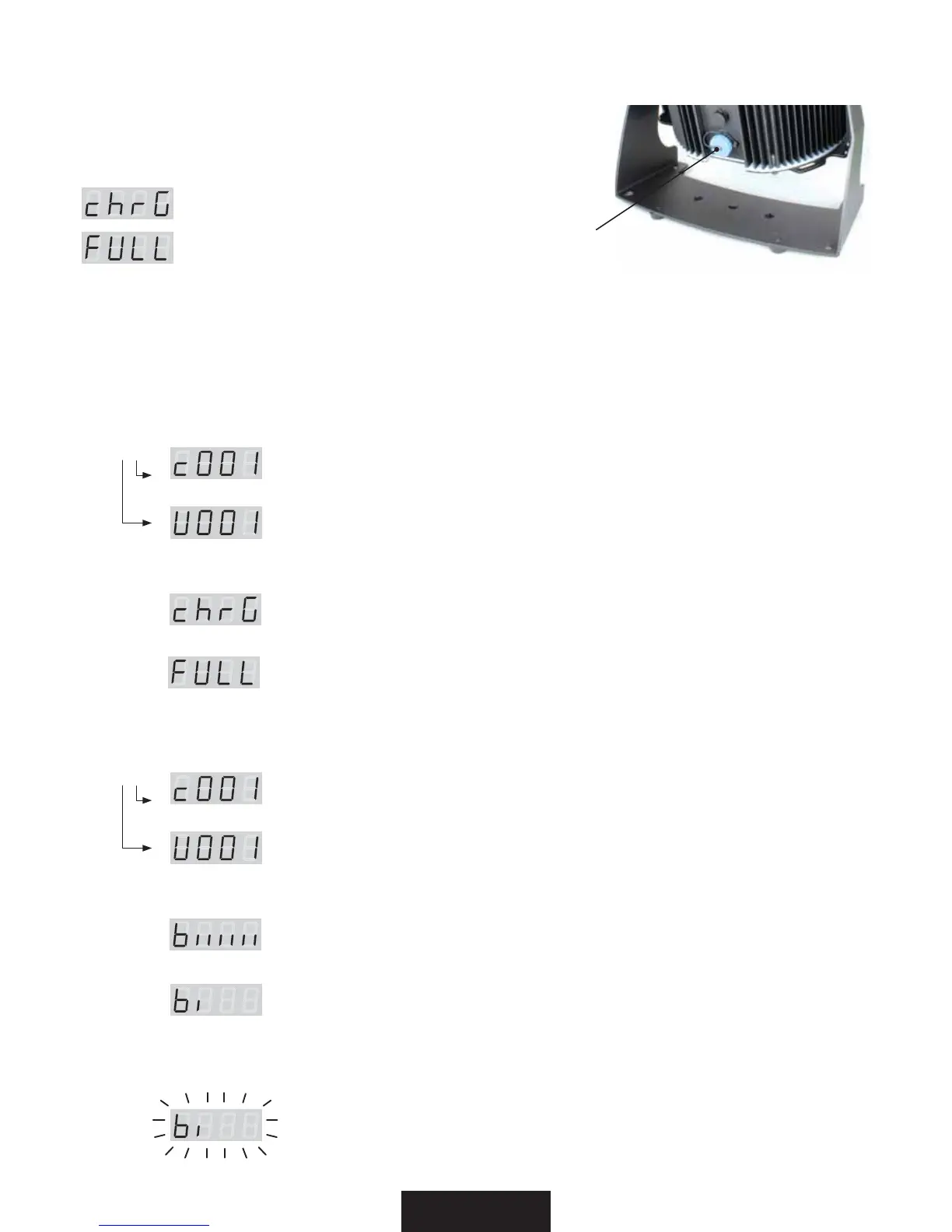 The fixture automatically starts the charge. The display shown: