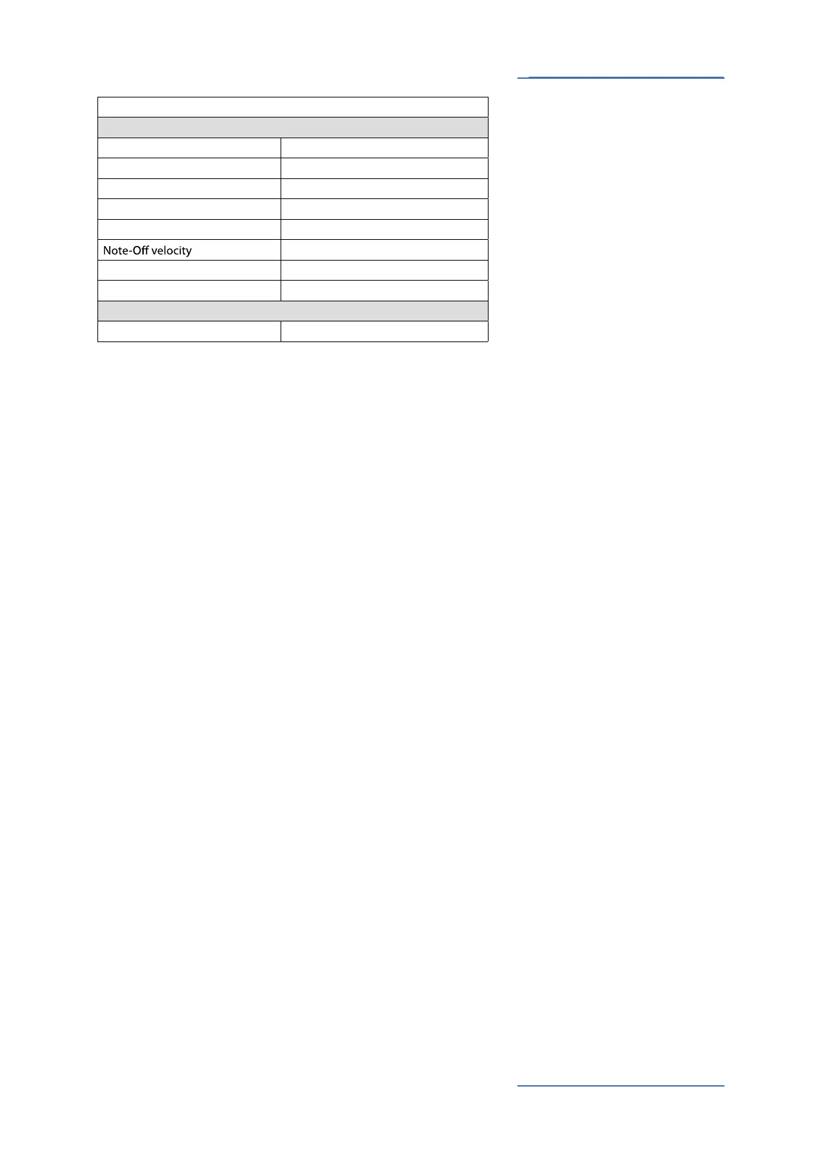 MIDI implementation chart
