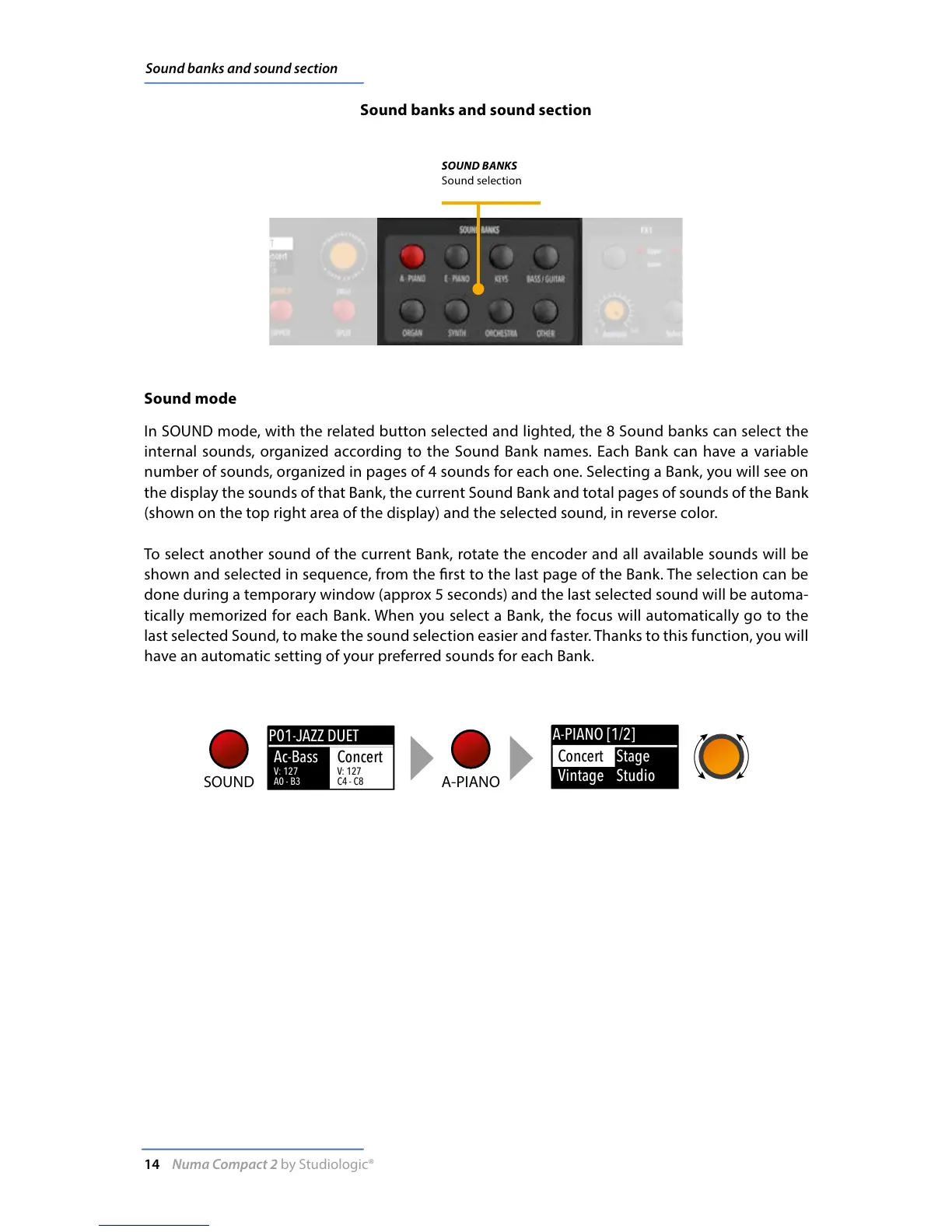 In SOUND mode, with the related button selected and lighted, the 8 Sound banks can select the