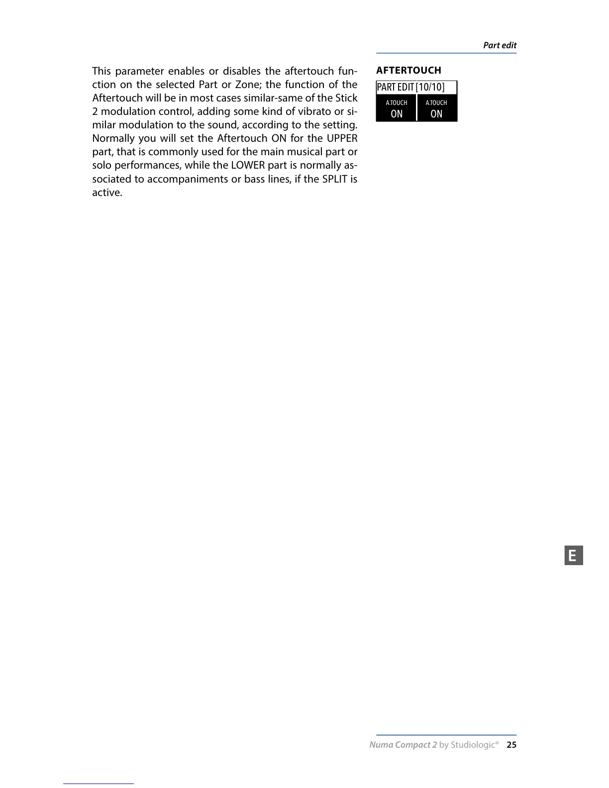 Normally you will set the Aftertouch ON for the UPPER