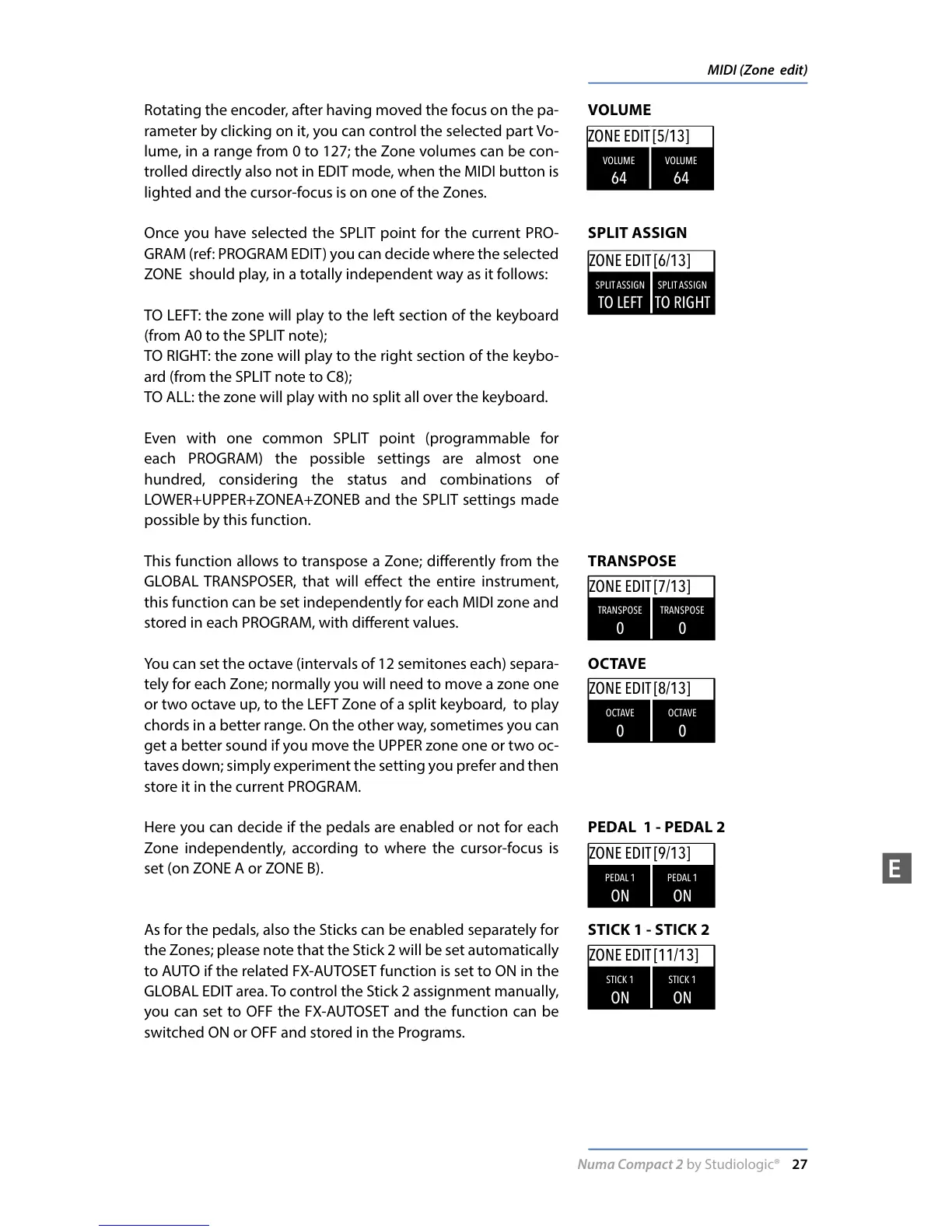lume, in a range from 0 to 127; the Zone volumes can be con-