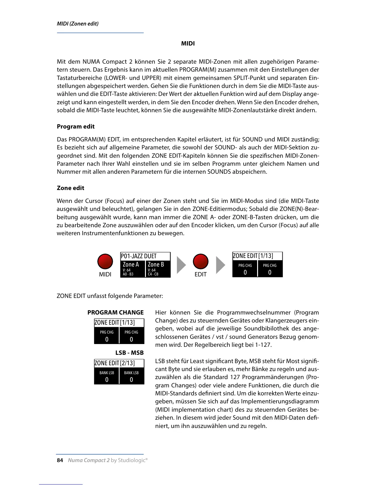 Mit dem NUMA Compact 2 können Sie 2 separate MIDI-Zonen mit allen zugehörigen Parame-