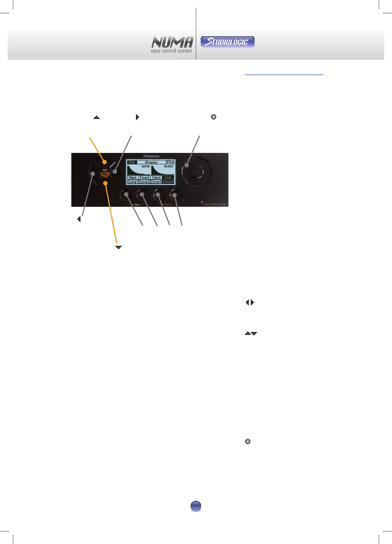 Operation of the NUMA is done with 4 touch-sensitive pads,