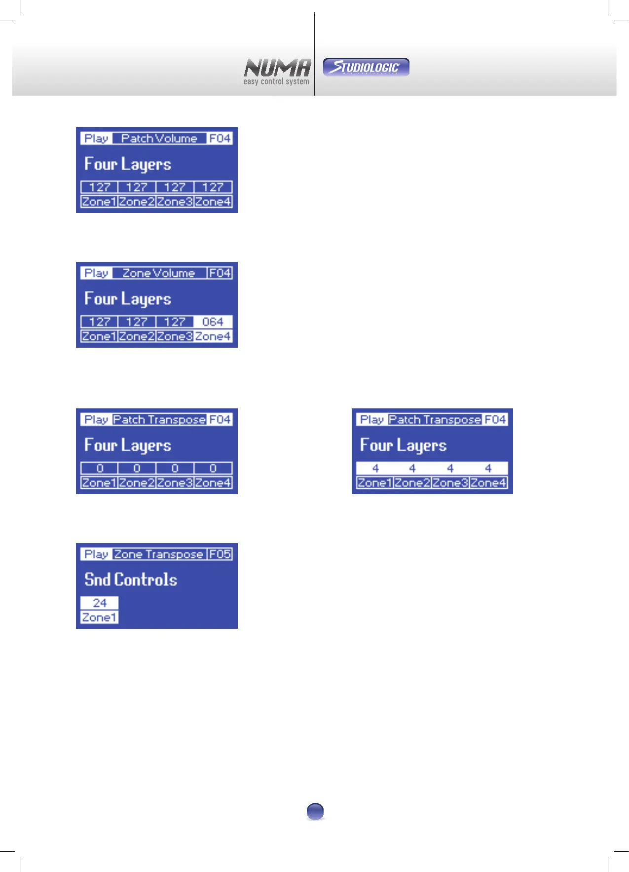 Patch/Zone Transpose• est la page où sont visibles les transpositions relatives aux Zones activées, la valeur