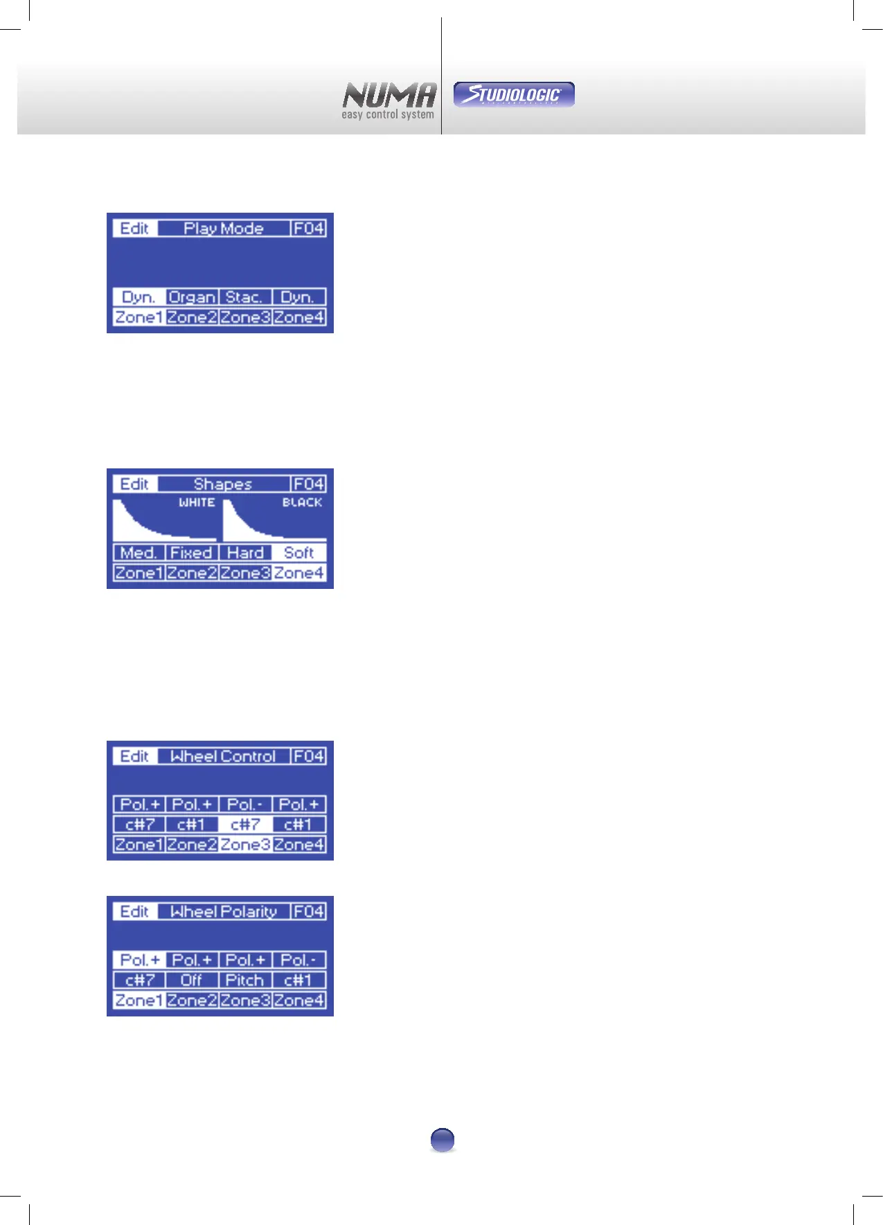 que commande la molette (Wheel Control) et de la polarité de celle-ci (Wheel Polarity) pour chaque Zone. La sélection