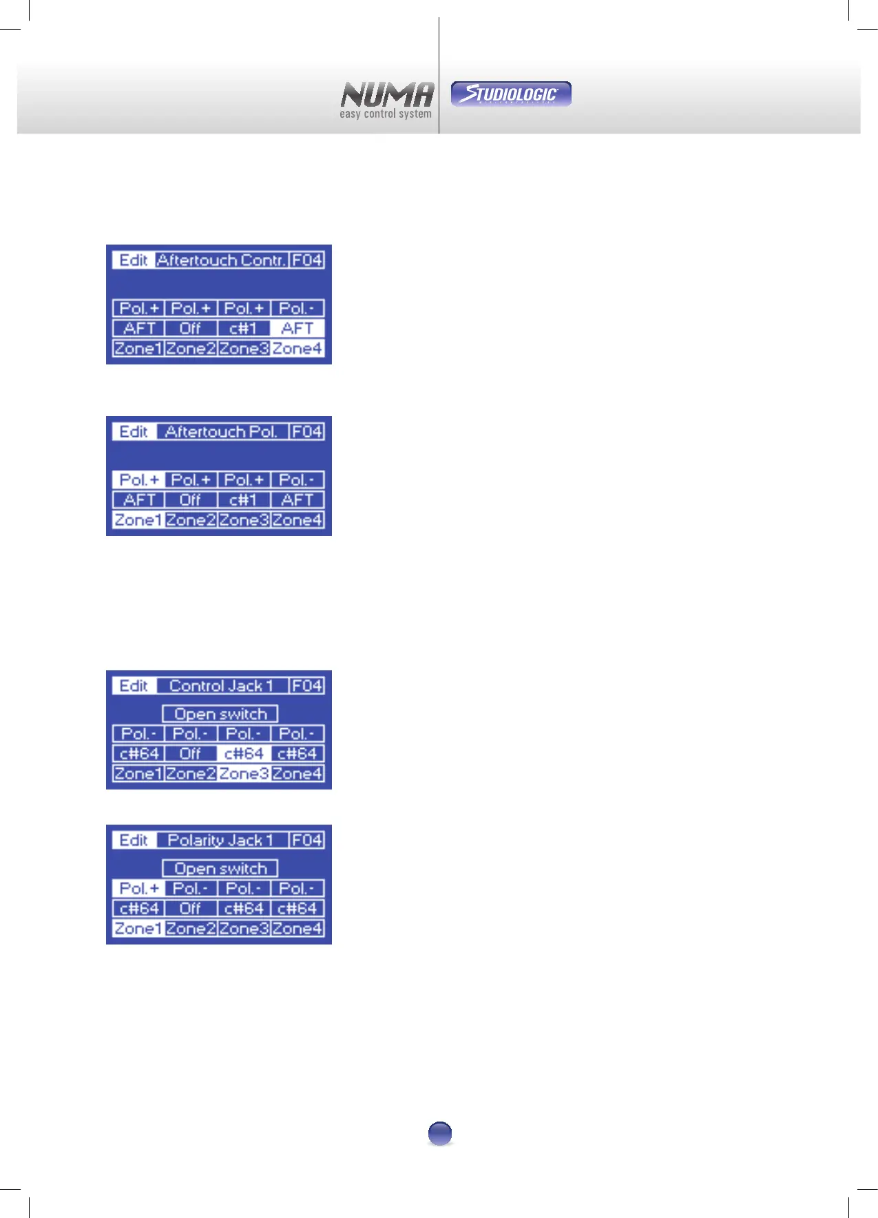 La page d’édition AfterTouch Polarity peut avoir des valeurs de polarité Pol- et Pol+.