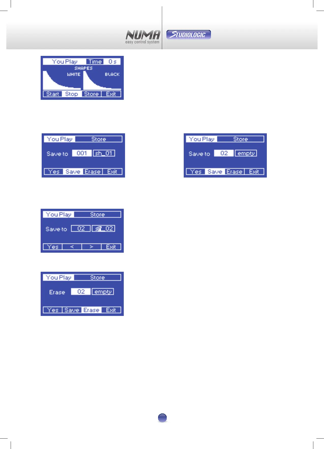 À ce moment, vous pouvez décider de mémoriser la courbe réalisée en pressant la touche Store, sinon vous pouvez