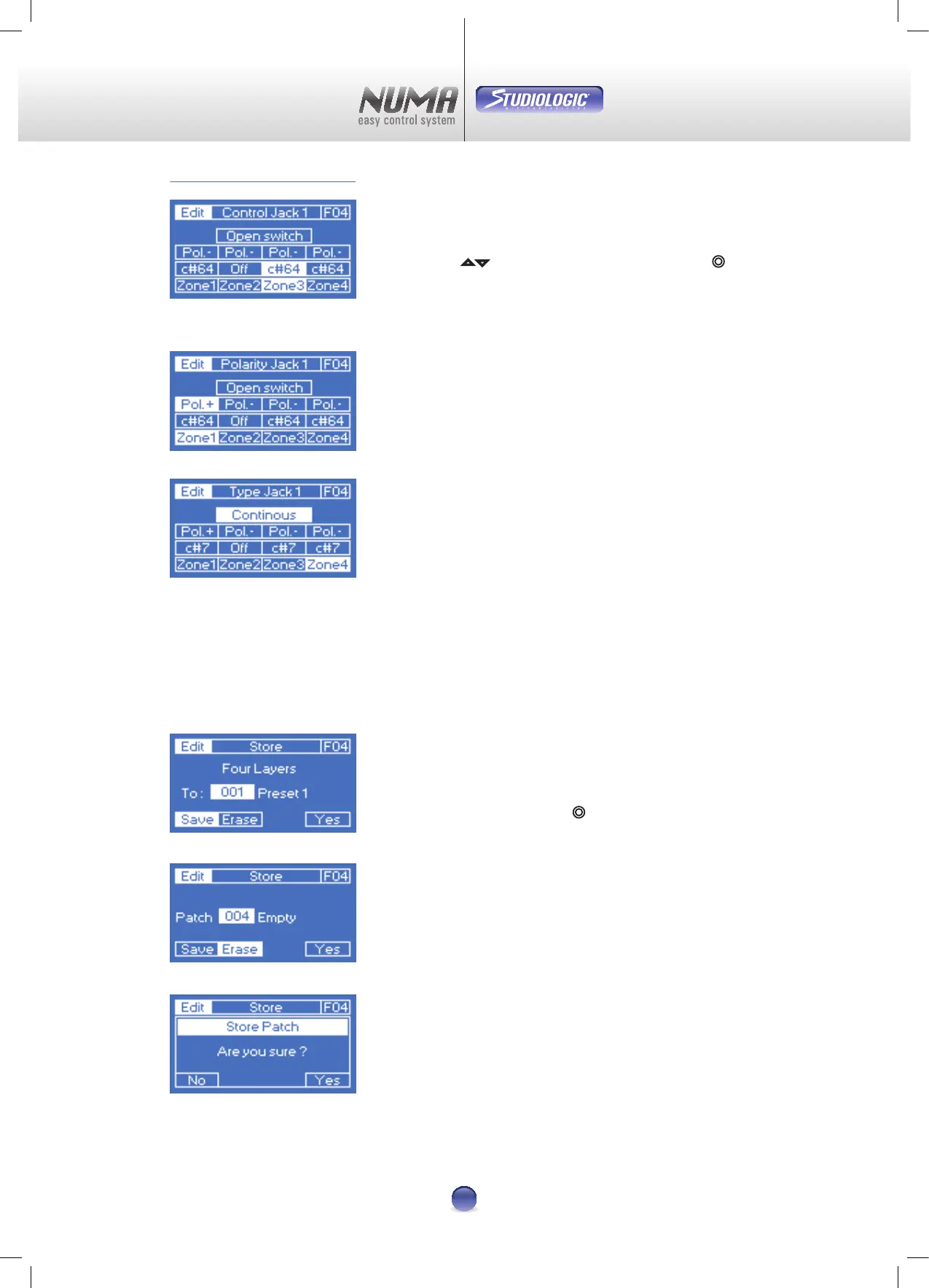 einen Patch (1-64) speichern und Patches löschen. Gehen Sie