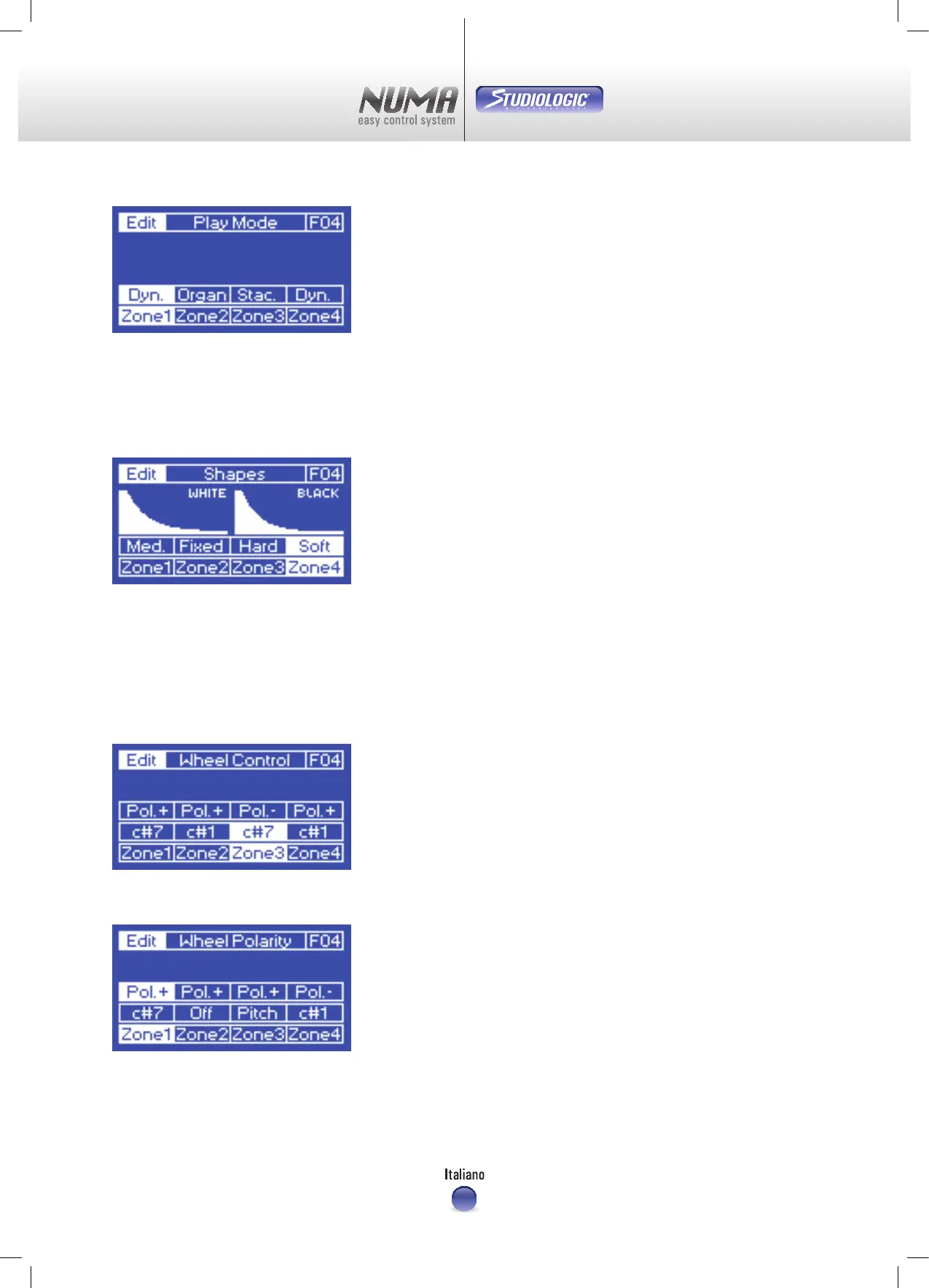 Edit t Shapes è la pagina in cui si possono impostare le curve dinamiche relative alle 3 modalità possibili del Play