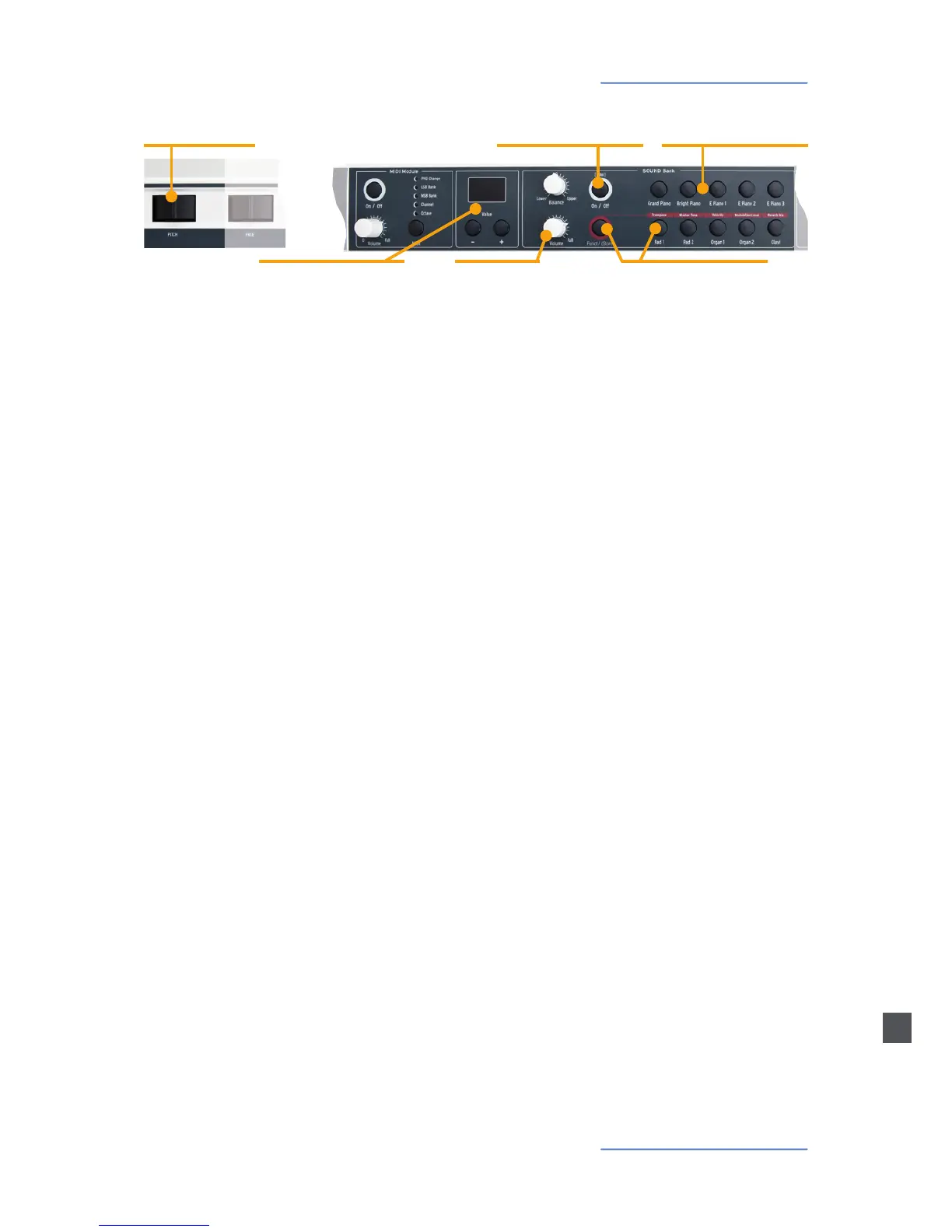 aus. Ist ein Klang ausgewählt, leuchtet seine LED / Taste.