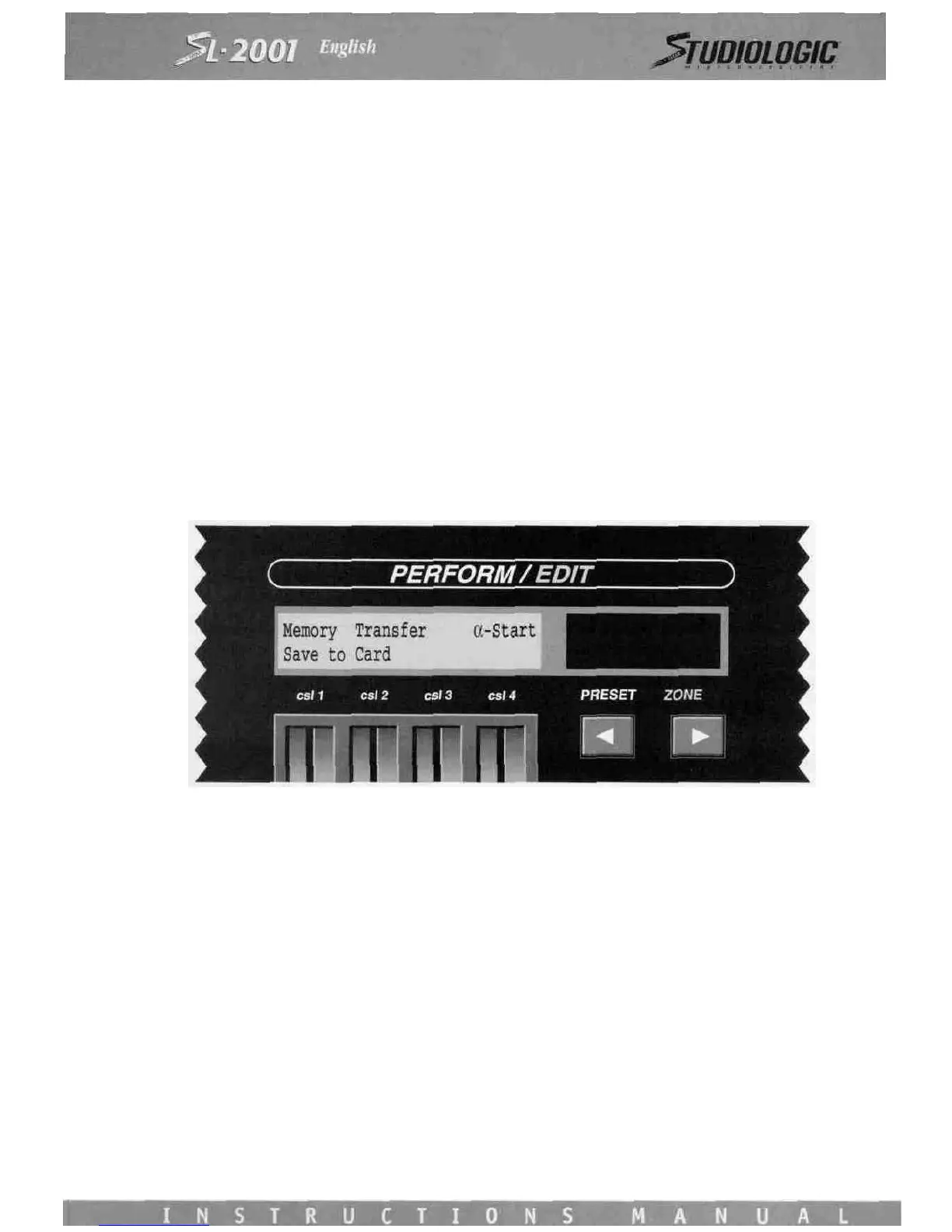 To load the SL-2001 memory via sys-ex, the Alpha switch must be pressed before the data is transmitted from the computer.