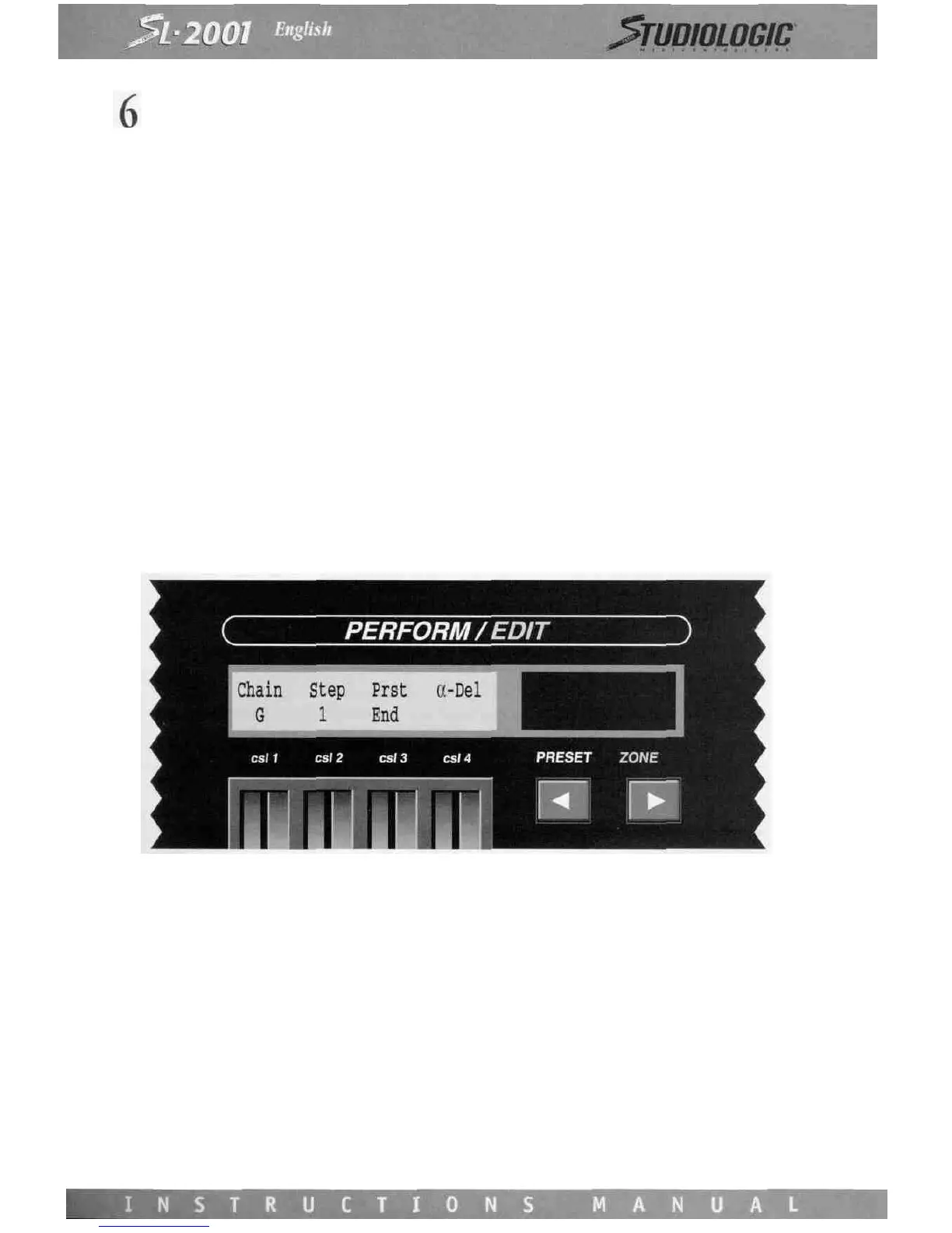 SL-2001 is returned to Perform Mode, the selected chain will be active. The current chain letter and step number will appear