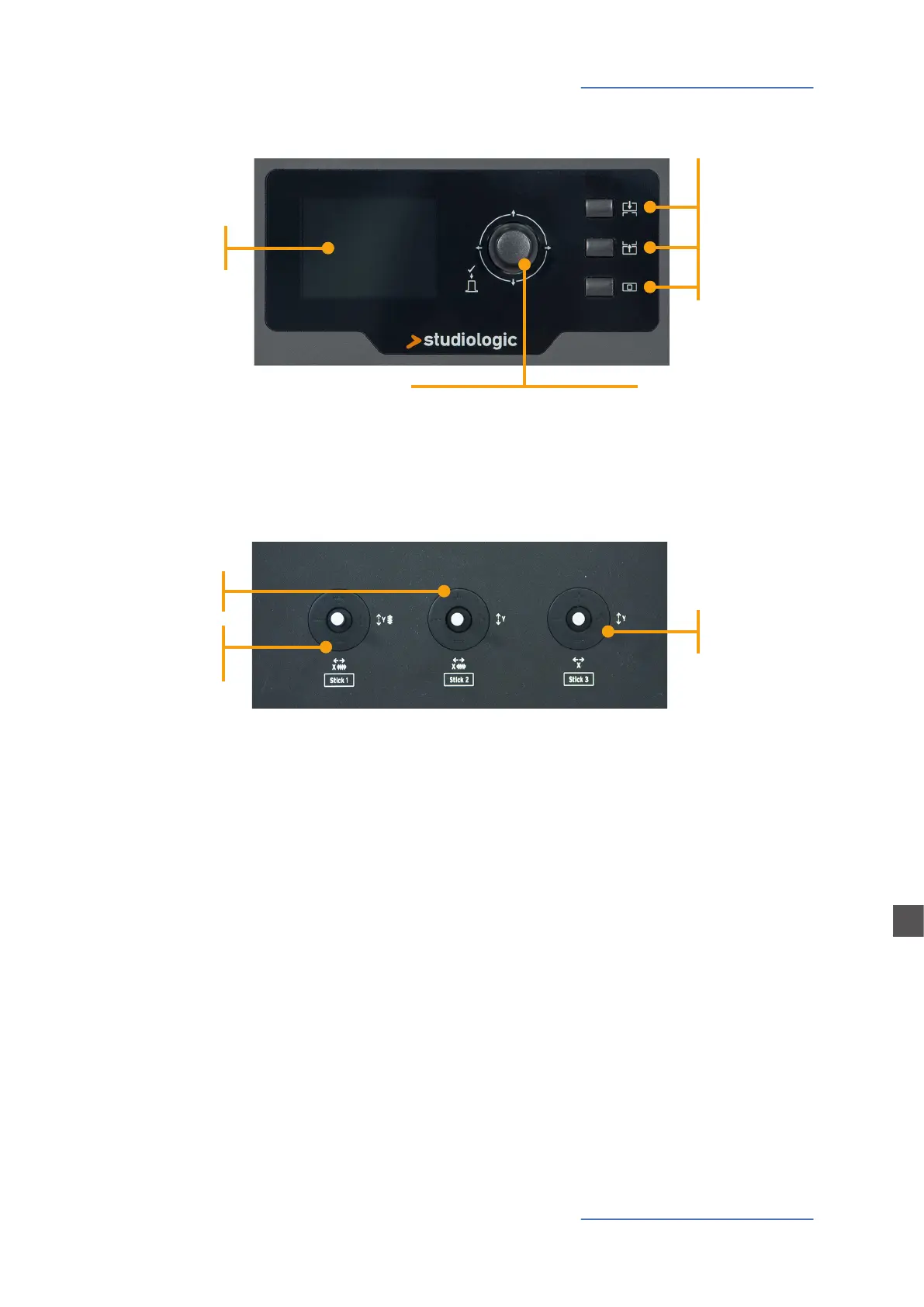 Studiologic SL73 STUDIO - Control Panel Overview; Display and Encoder; Programmable Sticks