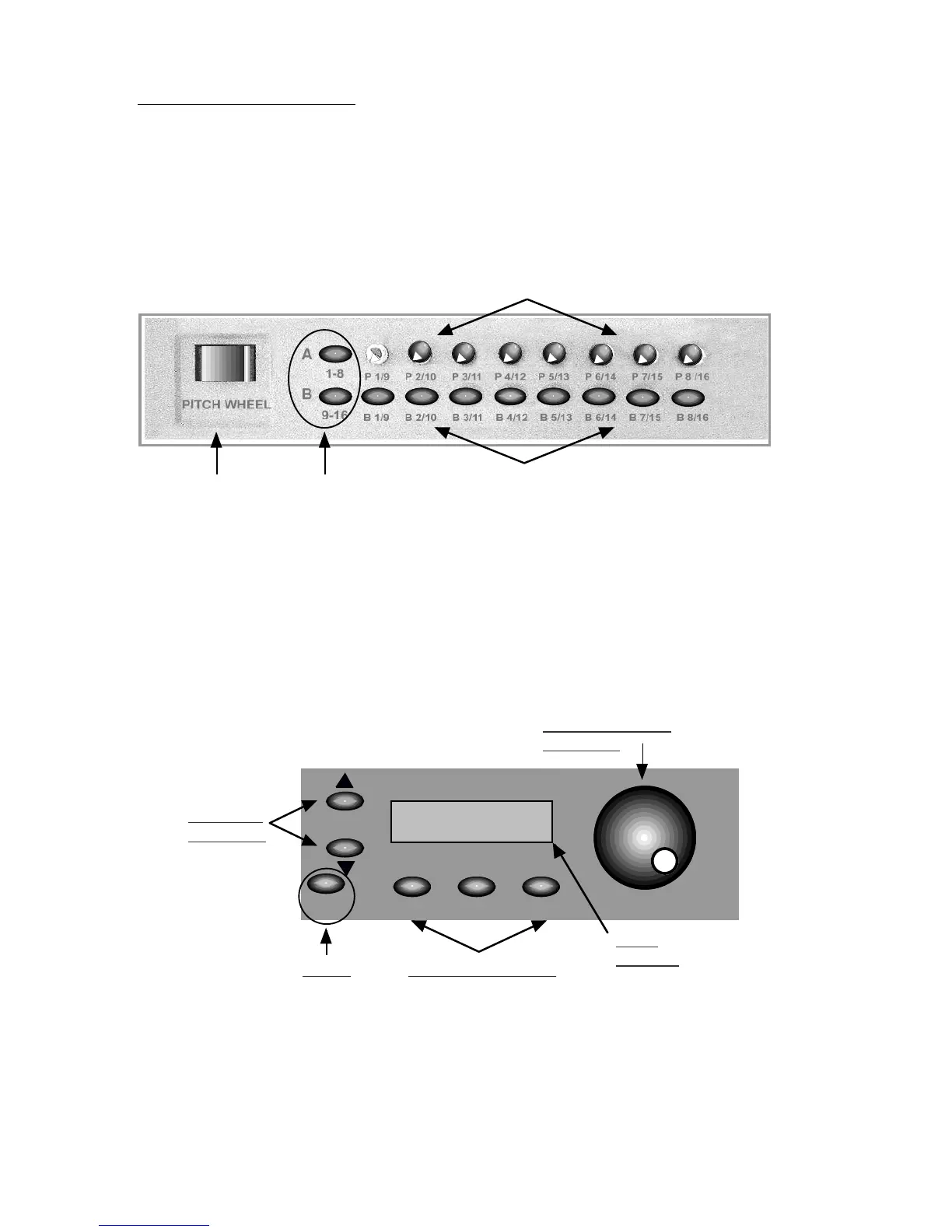 to reverb depth on a sound module. 8 knobs, 8 Buttons, 2 banks each giving 32