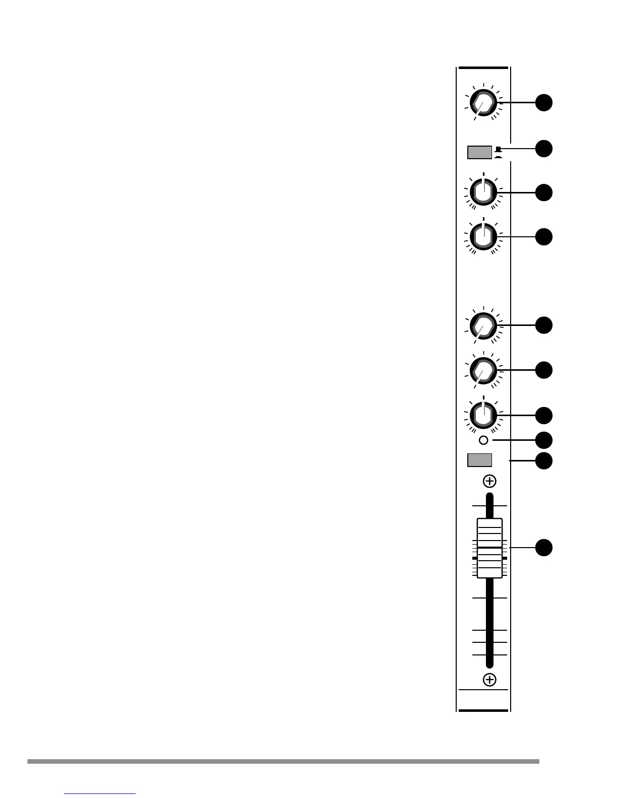 20 FADER : The fader adjusts the level from the channel to the main output. The fader acts as