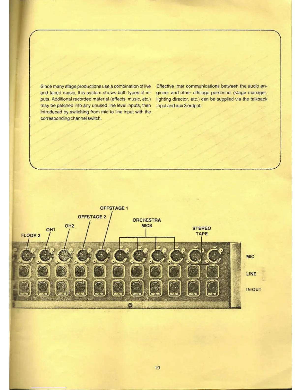 ancl taped musiC, this system shows both types 01 in- gineer and other oftstage personnel (stage manager,