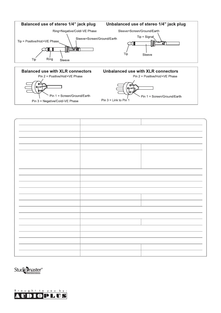 W www.audioplus-india.com / www.studiomasterprofessional.com