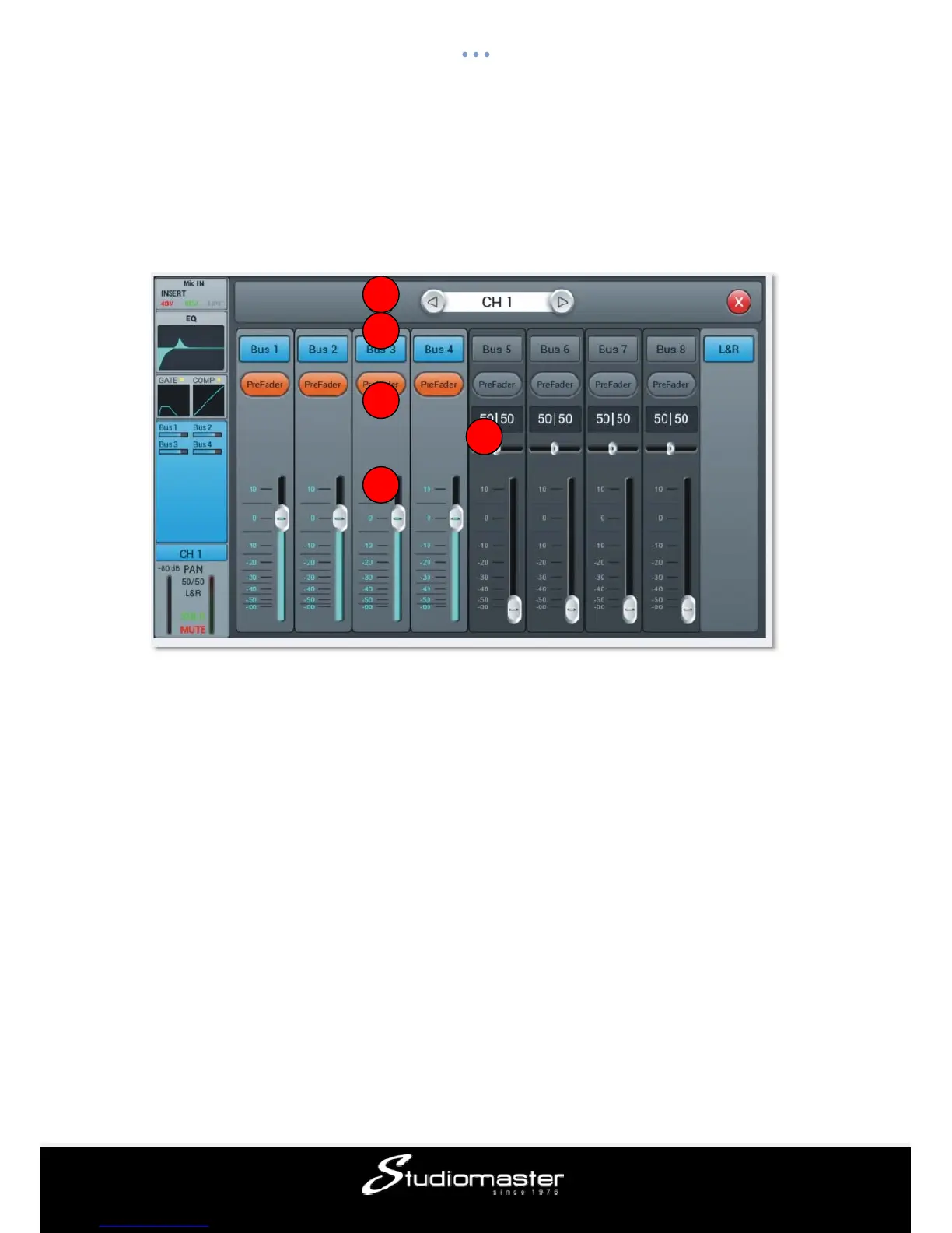 Each input channel can send signals to 4 mono busses (1-4), 4 stereo busses (5-8) and