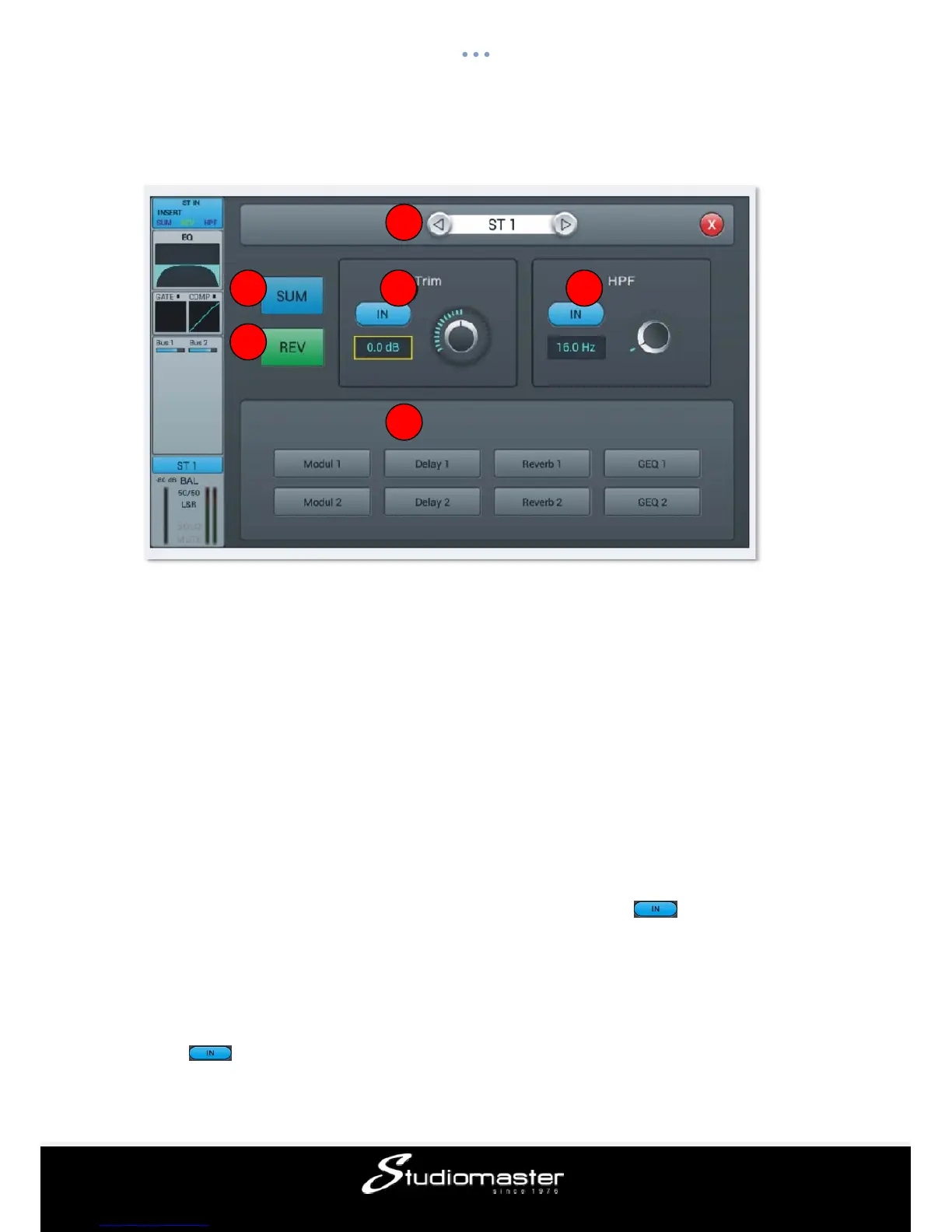 disabled. Adjust the HPF frequency by the soft-encoder on the touch screen or the main