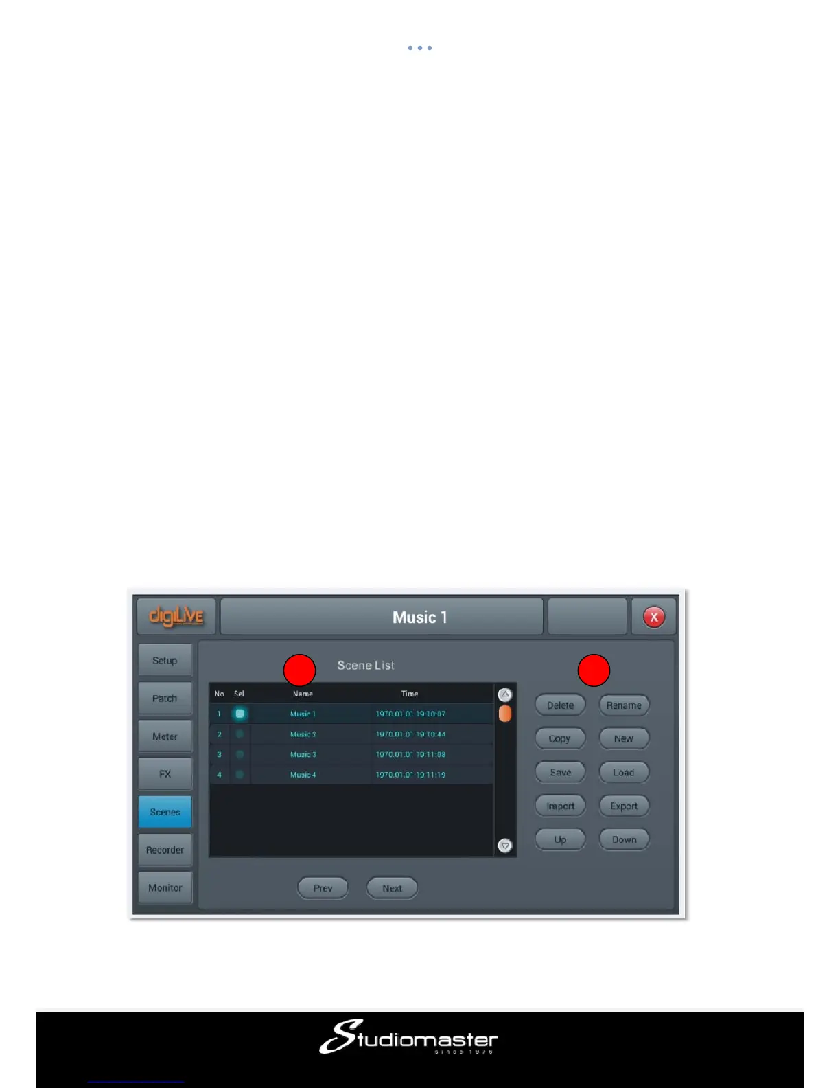 The page contains Scene List and operations for scenes, which are complete "snapshots"