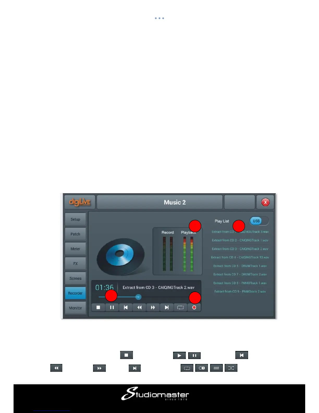 The recorder page will playback recorded material on a USB drive inserted in the digiLiVE