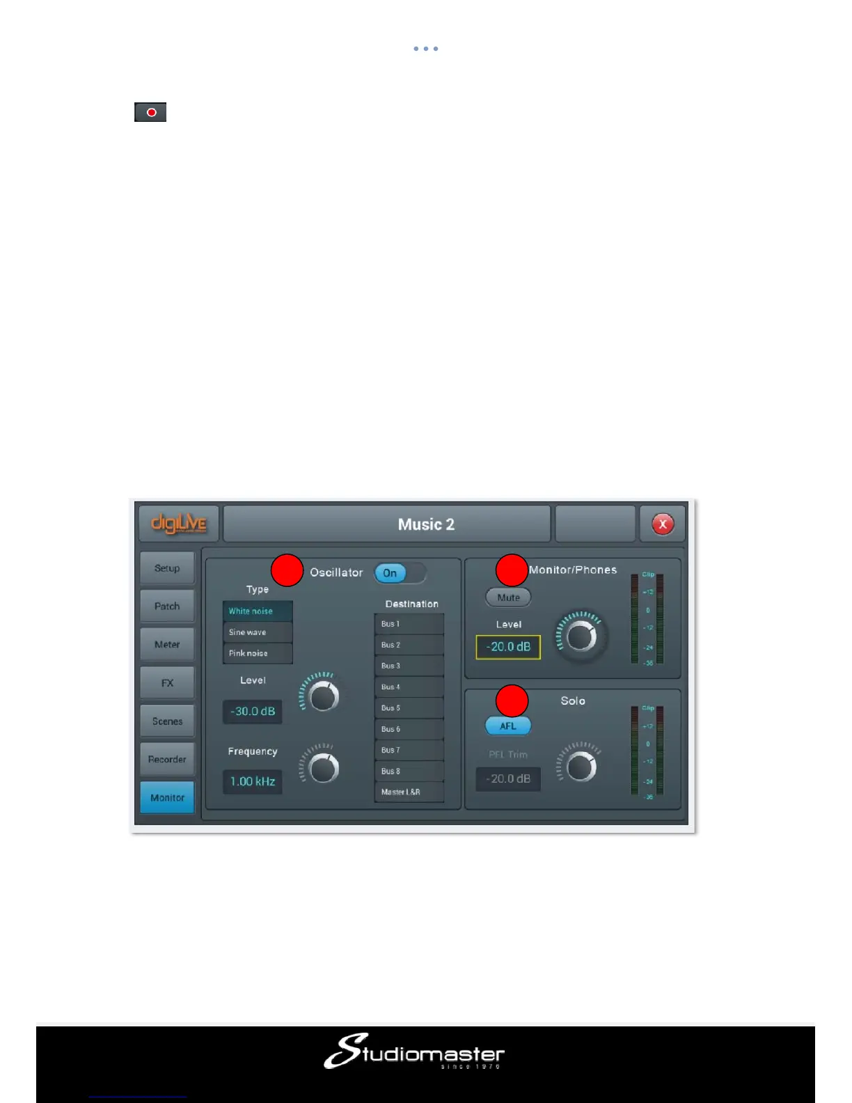 The page contains settings for Oscillator, Monitor / Phones and Solo.