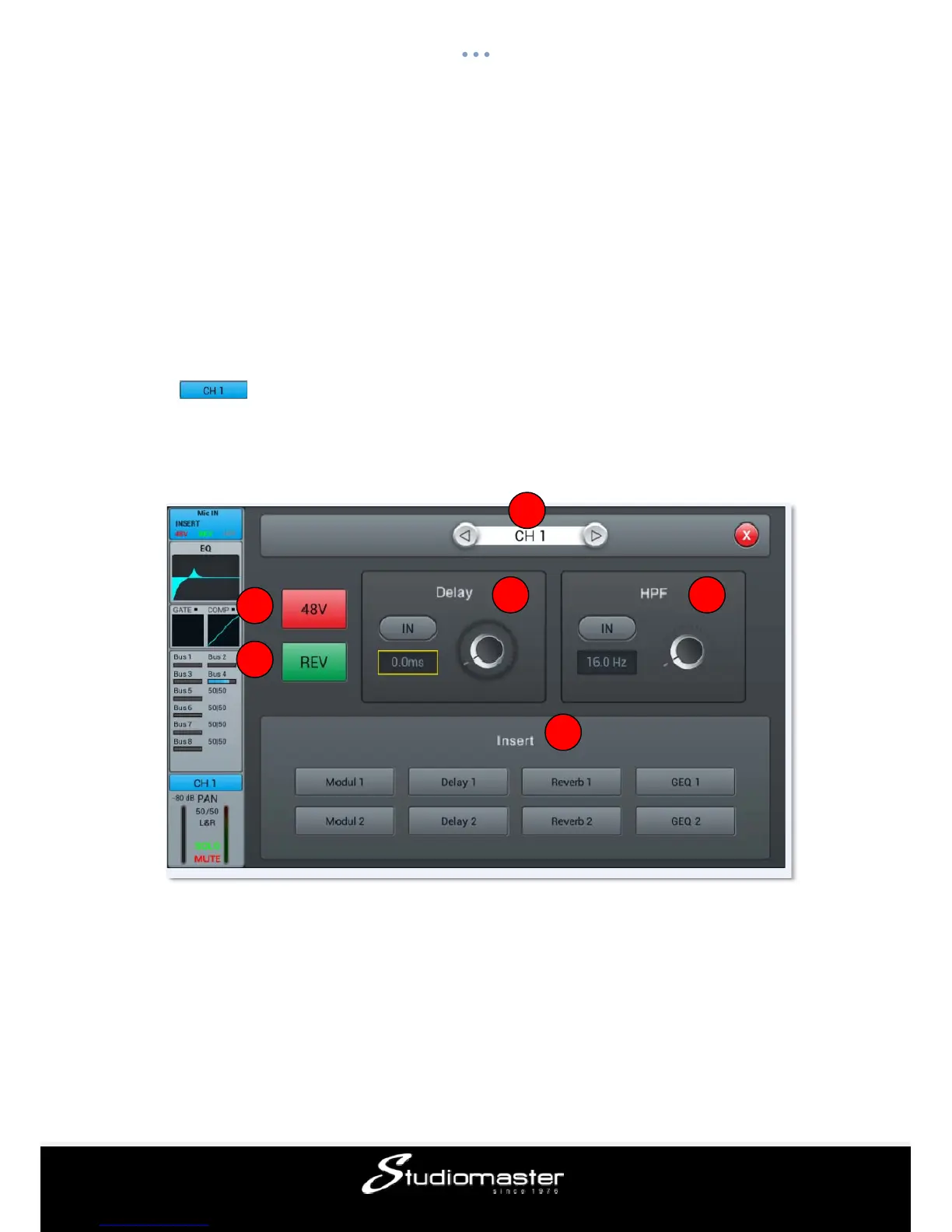 Press to enable 48V phantom power for the MIC channel. Press again to disable it. Default