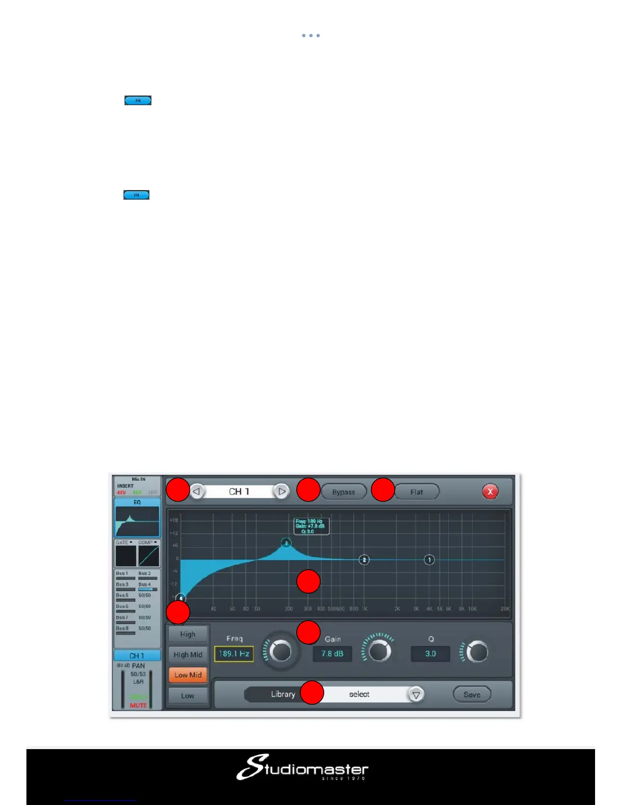 The EQ features a 4-band full parametric EQ that can easily be set up on screen via touch.