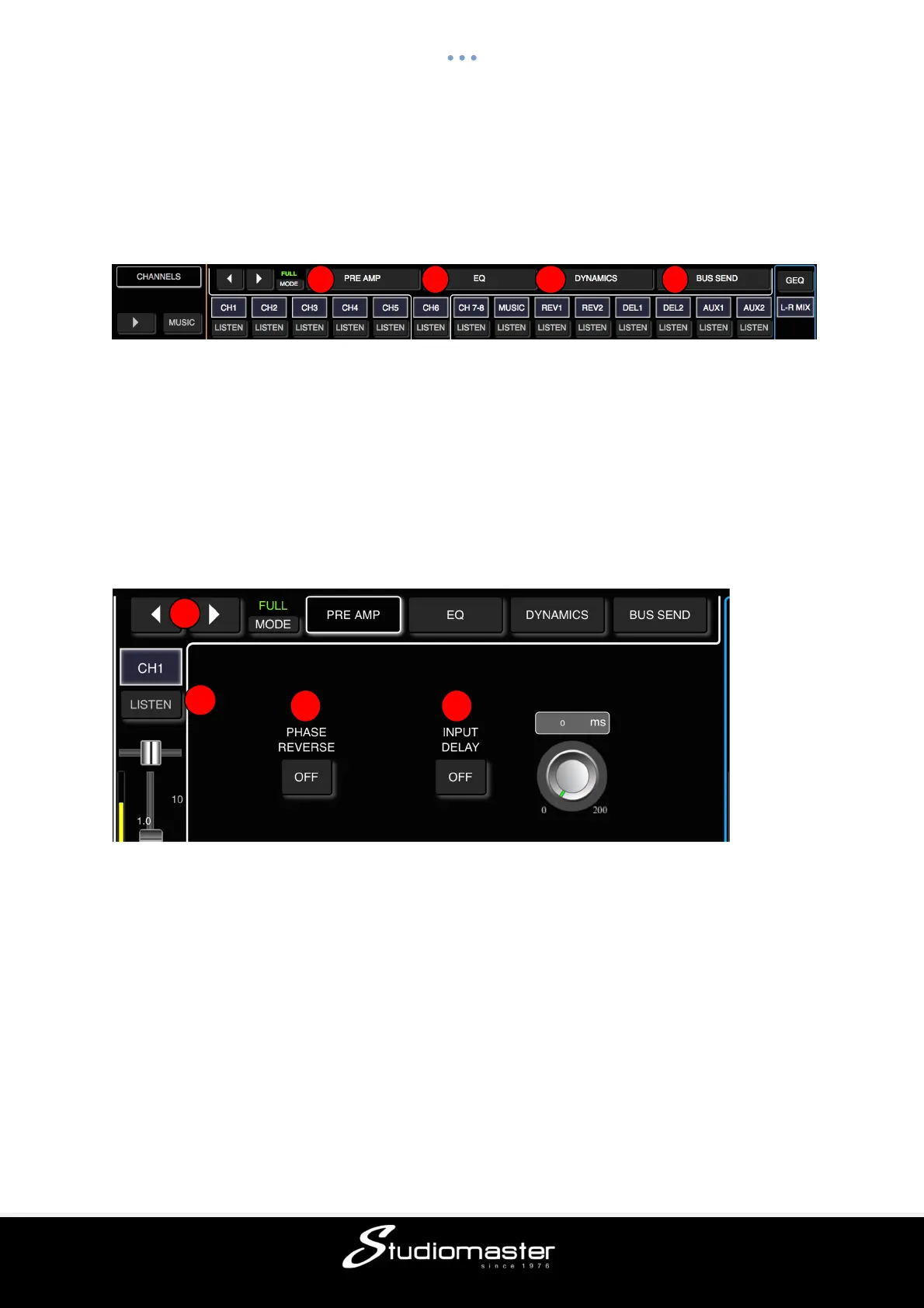 The MIC (microphone/line input) input channel contains four individual modules: Preamp,