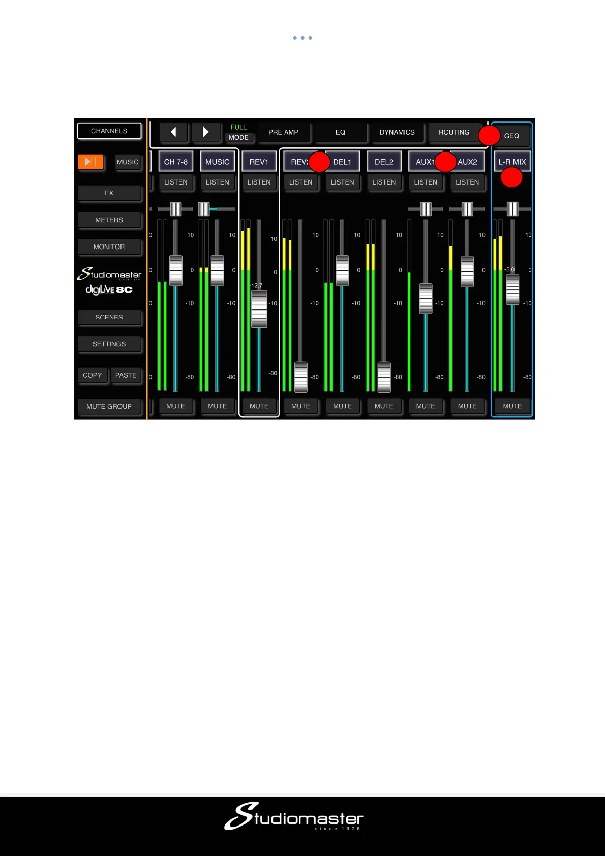 button above the L-R Mix fader (GEQ button turns yellow and GEQ Page opens).