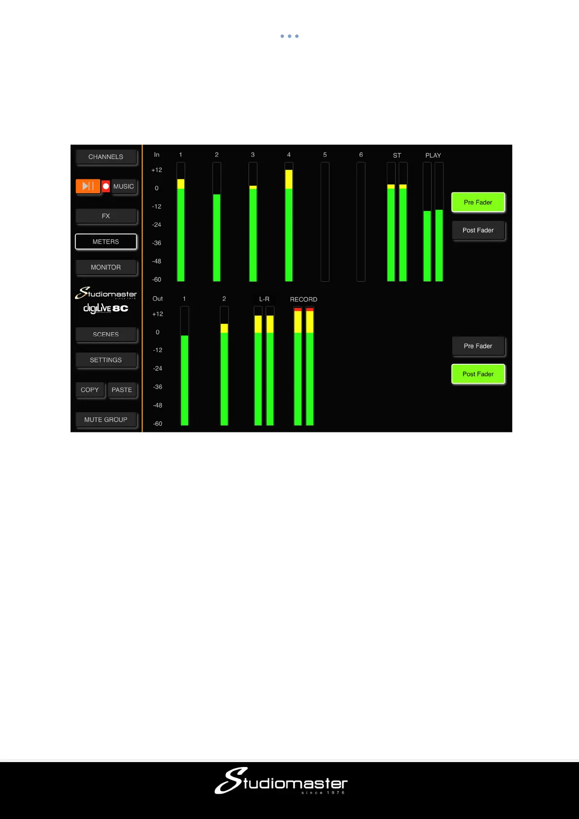 ignal levels can be displayed either Pre-Fader or Post-Fader.