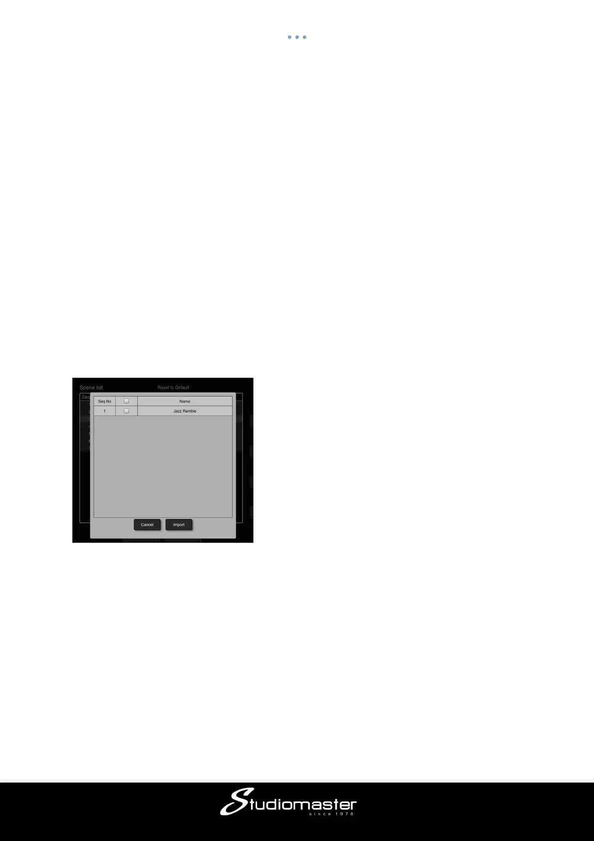 Import:Touch the Import button to load a scene from a USB drive connected to the digiLiVE