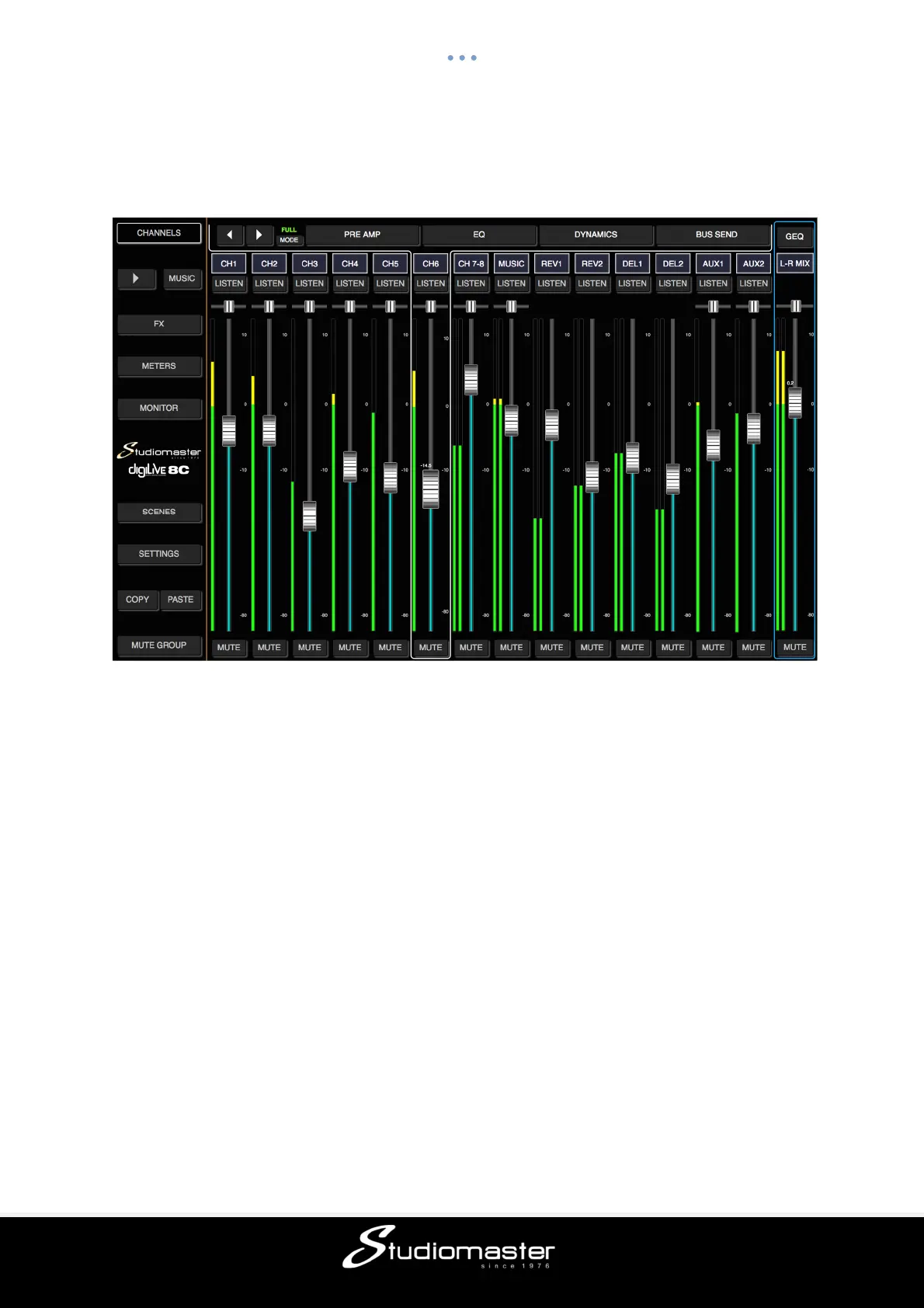 faders. The left-hand menu and the channel menu bar above the faders always remain