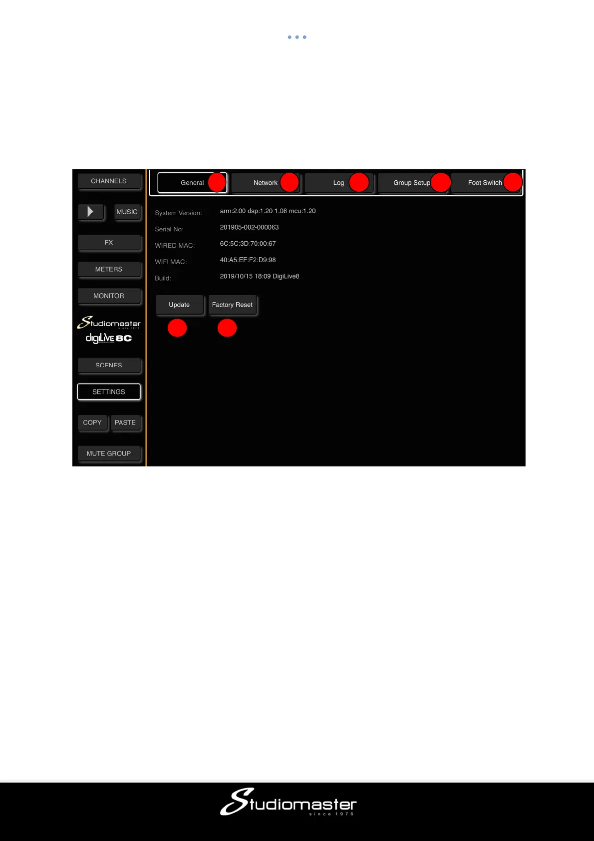 this sub-page, you can reset the digiLiVE by using a paperclip or similar tool to press the