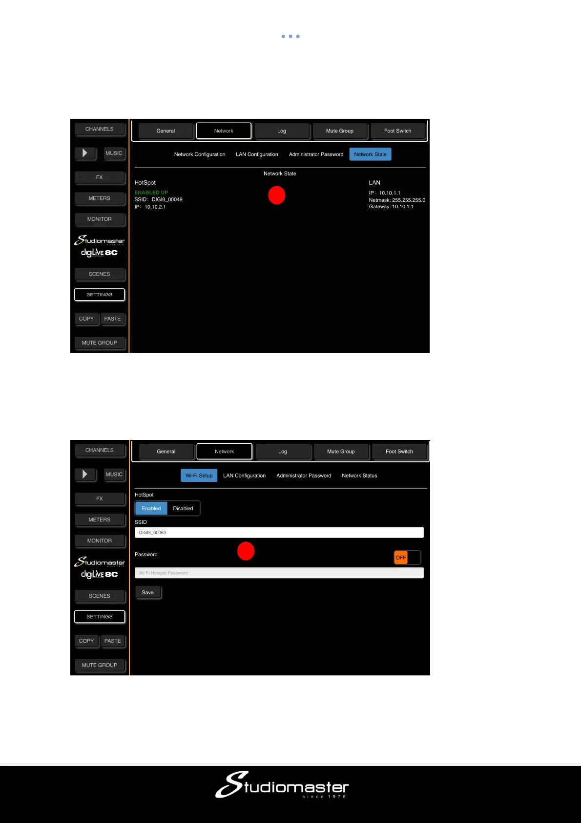 ④ This page allows you to change the digiLiVE Wi-Fi Hotspot SSID (Service Set Identifier)