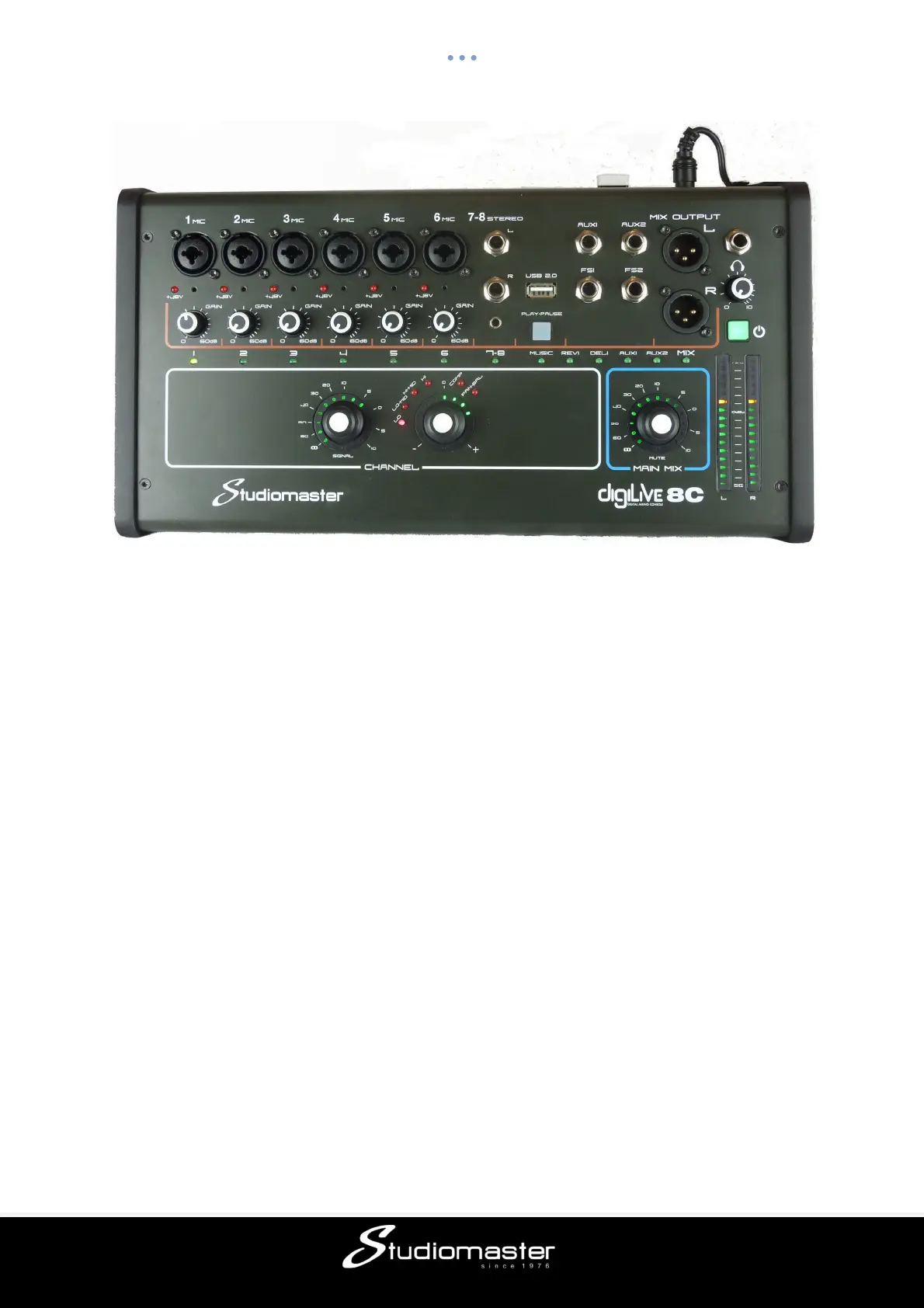 The digiLiVE 8C features 6 mono Mic/line input channels (each with XLR/TRS jack