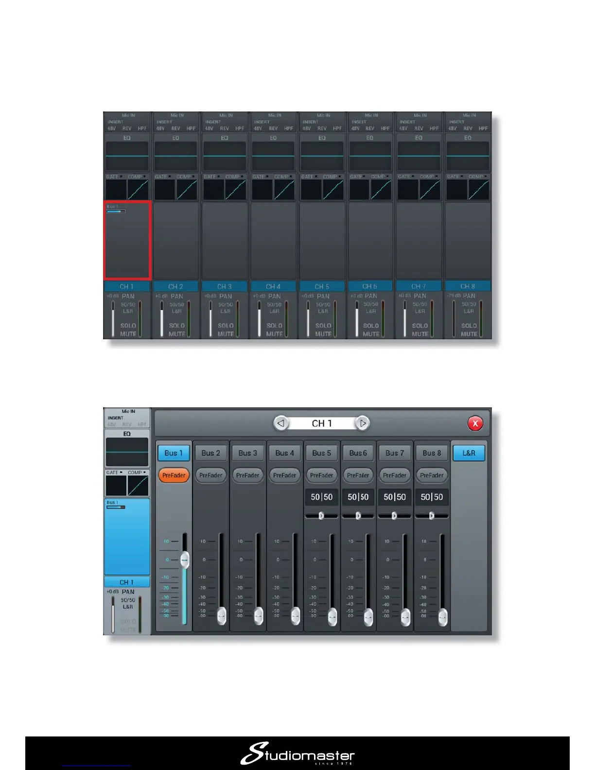 of the busses, and thus to each output. You can “scroll through” Channels 1 to 8 by pressing the
