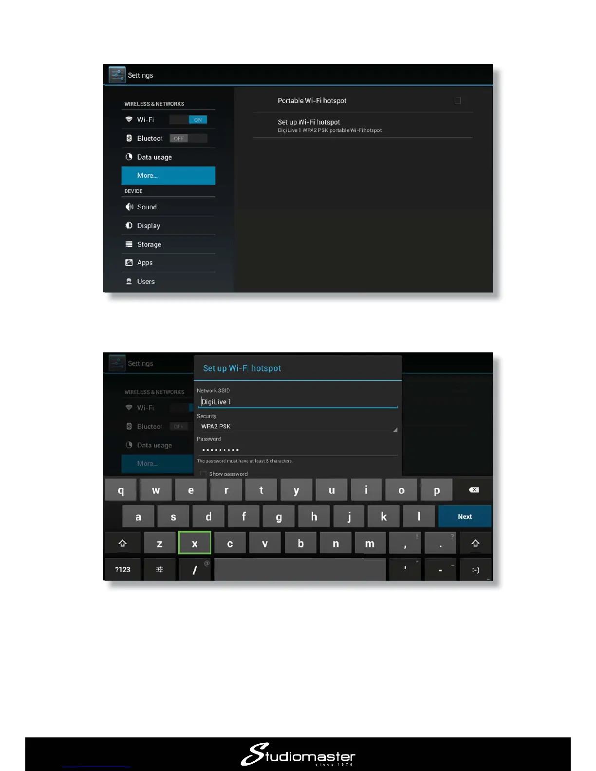  Select Portable hotspot, followed by Setup Wi-Fi hotspot