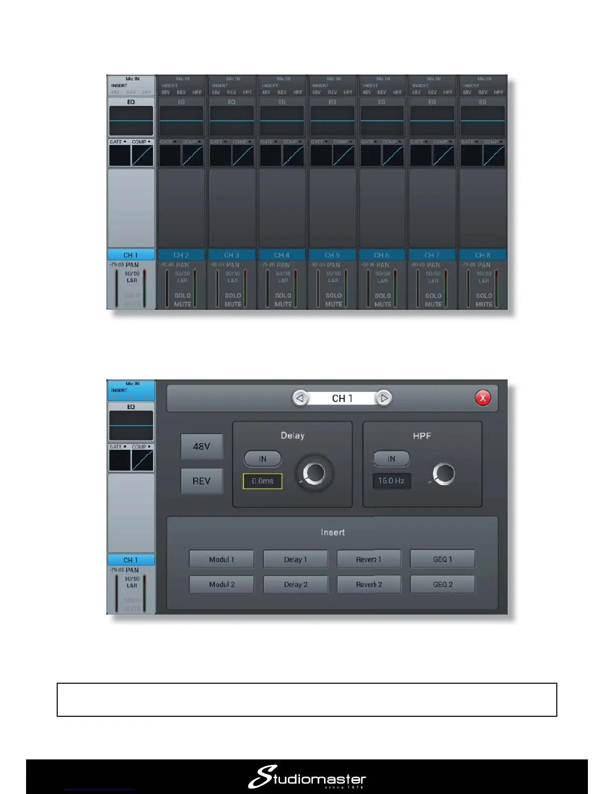 The 48V indicator at the top of the on-screen channel strip turns to red to remind you that phantom