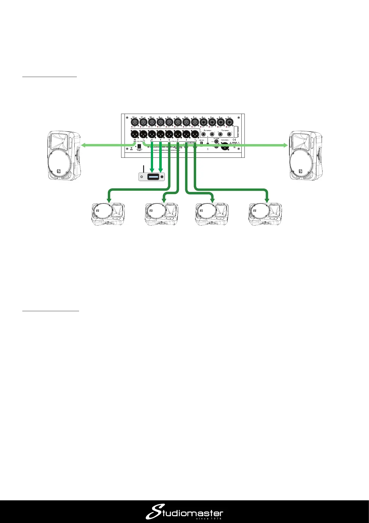 monitors to OUTPUTS 1 to 4, the IEM transmitter to OUTPUTS 5 and 6 and the side lls to MIX