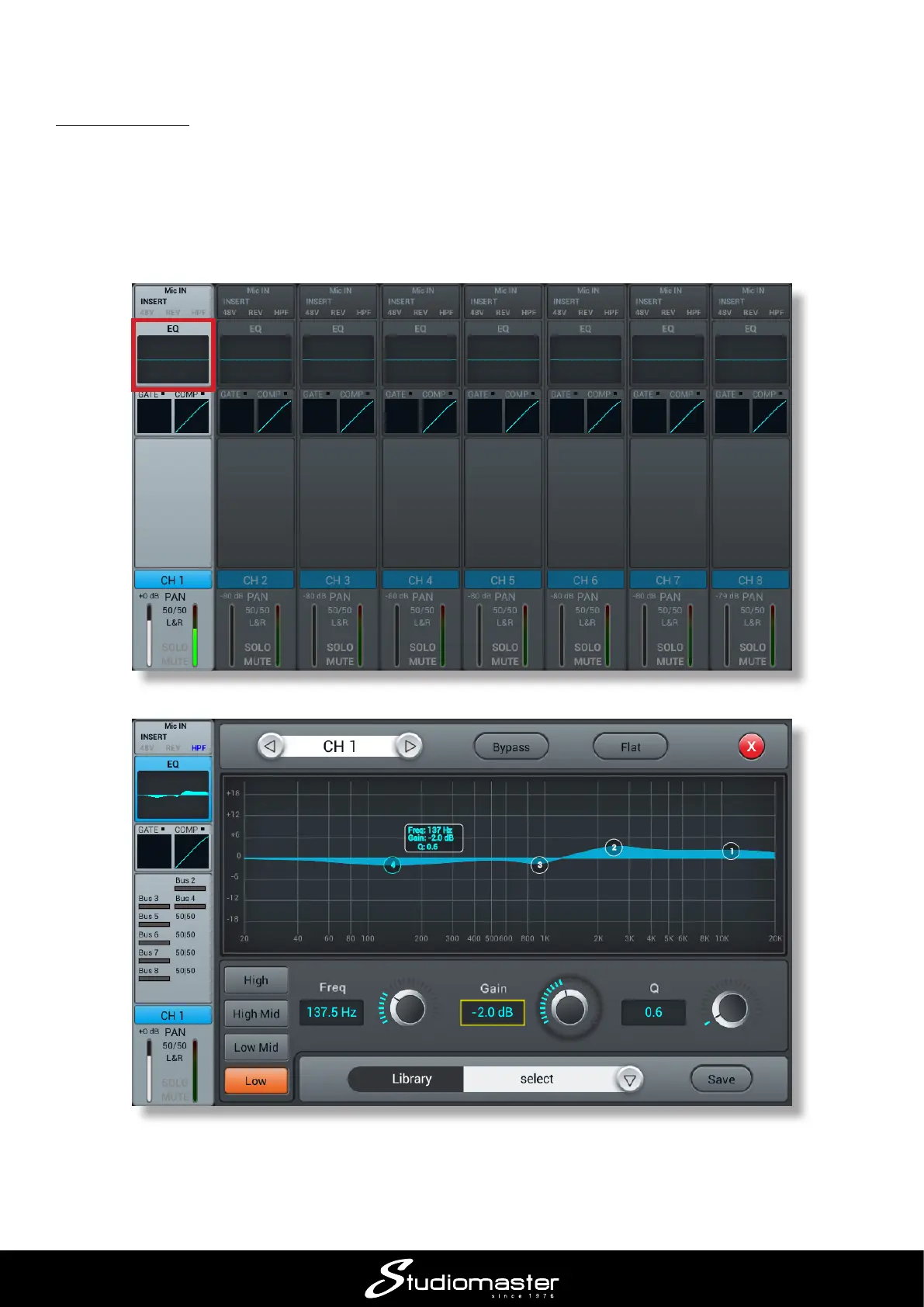 channels have a “at” frequency response. To access the EQ controls for any channel, touch the