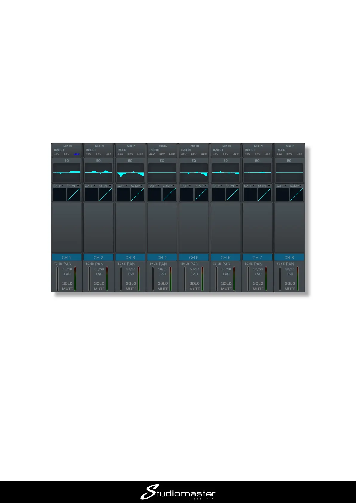 Note that a miniature version of the EQ curve for each input is displayed on the main channel page.