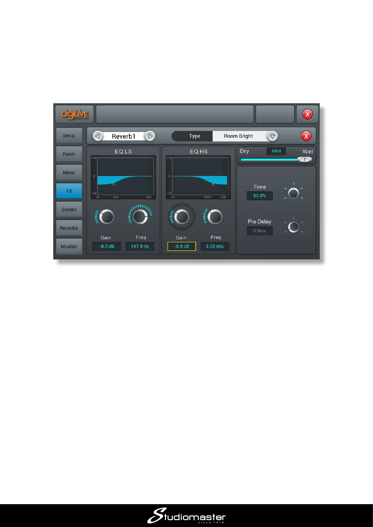 shelving lters (labelled LS and HS respectively) are provided. The Gain controls set the amount